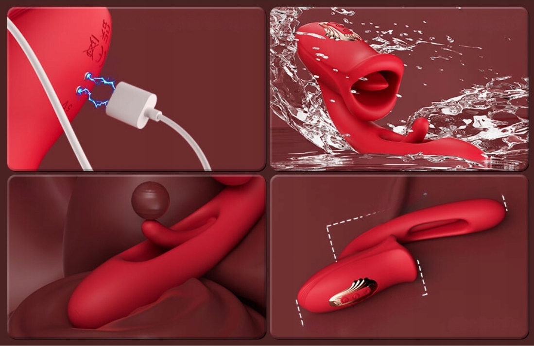 Пристрій складається з рухомого рота з язиком, який масажує кицьку, і гнучкого вібратора для точки g зі стимулюючою дією. випинання. Завдяки 10 функціям вібрації та пульсації в поєднанні з рухомим наконечником для стимуляції внутрішньої частини та стінок піхви кожен сеанс стає захоплюючою подорожжю, повною інтенсивних відчуттів. Використовуючи 10 режимів вібрації і пульсації язика, ви відчуєте, як кожна щітка проникає в найглибші куточки вашого тіла. Унікальний рух закривання та відкривання рота, що імітує облизування та кунілінгус, забезпечує справжні відчуття, які піднімуть вас на вищий рівень задоволення. Обидва двигуни потужні, працюють разом або окремо, а перемикання між функціями надзвичайно інтуїтивно зрозуміле та просте. Стимуляція точки G надзвичайно ефективна, а водонепроникний дизайн означає, що ви можете насолоджуватися інтимними моментами в будь-якій обстановці. Це чудовий еротичний подарунок собі або коханій людині.