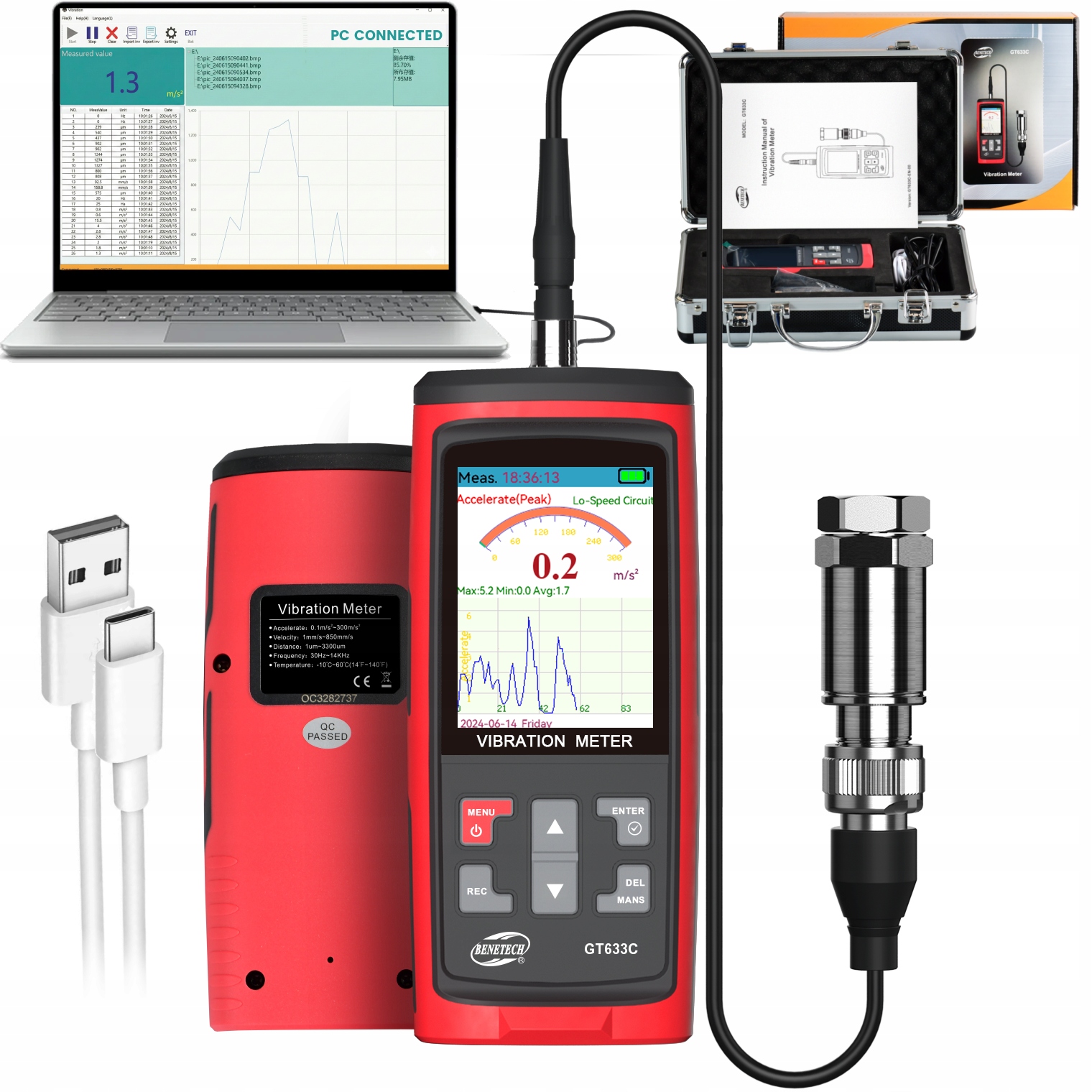 Професійний вимірювач вібрації Benetech GT633C із зовнішнім датчиком і програмним забезпеченням для ПК