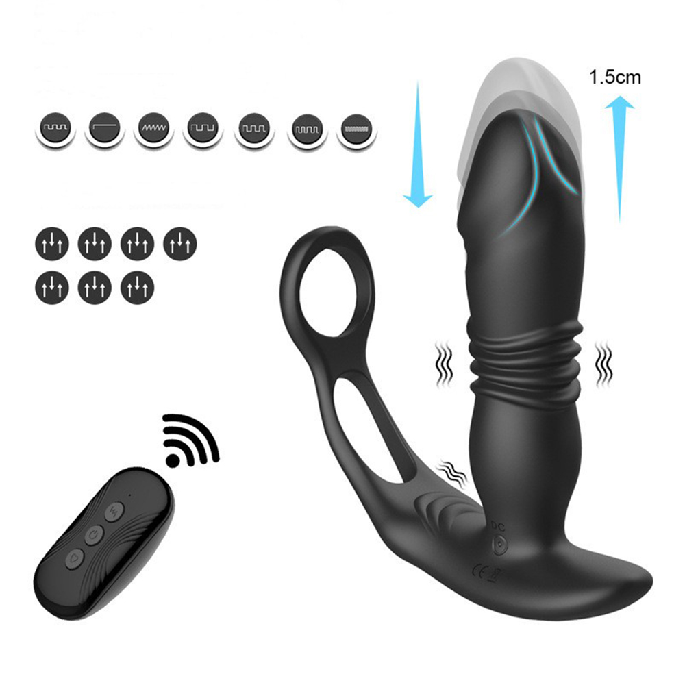 💞Чоловічий мастурбатор із подвійним кільцем, телескопічний вібратор для простати з дистанційним керуванням, водонепроникність IPX6💞