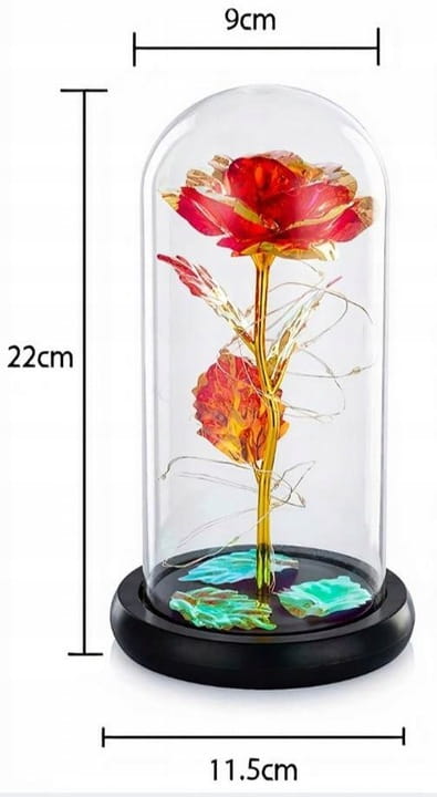 - Скляний купол , дерев'яна підставка та троянда, підсвічена світлодіодними лампами, створюють ідеальне ціле