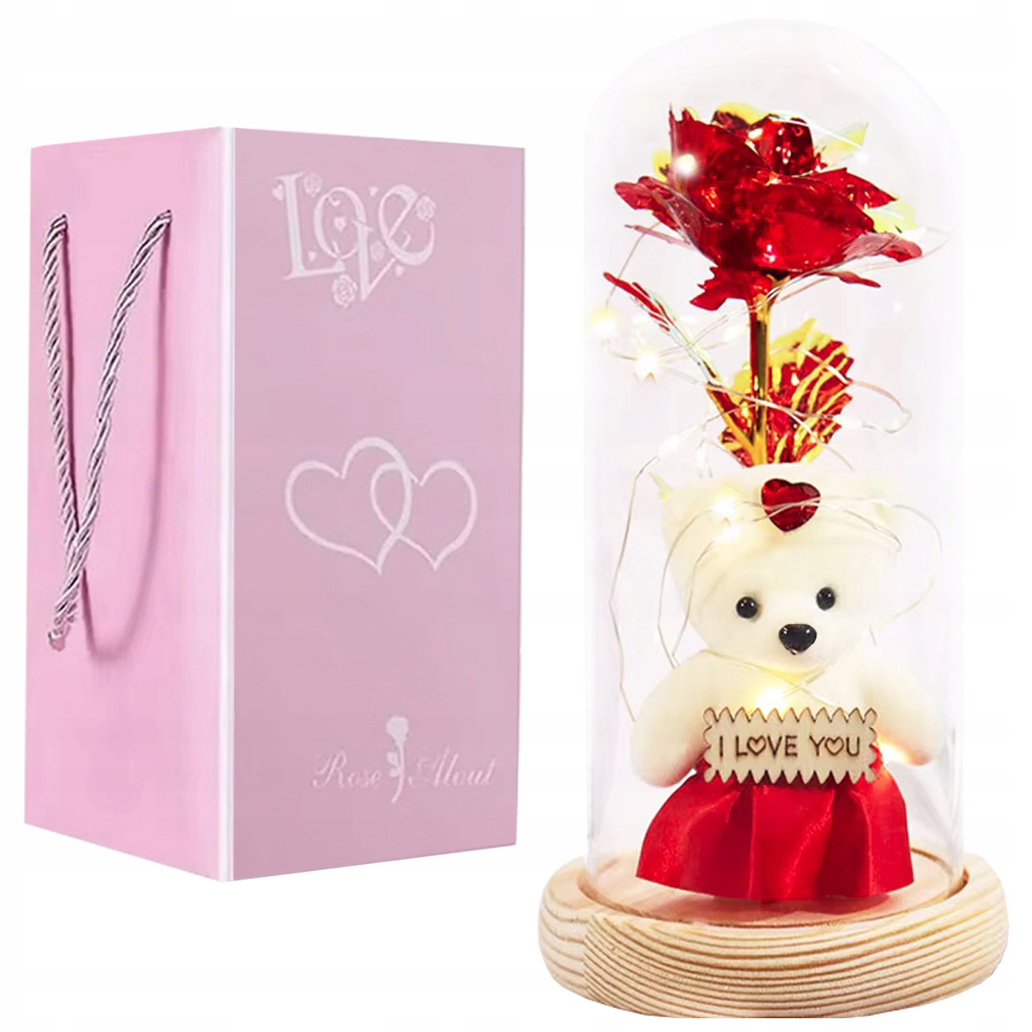 Захищає квітку троянди від пошкоджень і пилу. Його особлива структура розсіює світлодіодне світло, створюючи надзвичайну атмосферу та викликаючи чарівність спогадів. Завдяки цьому ви зможете знову пережити особливі моменти, повернувши спогади коханій людині.