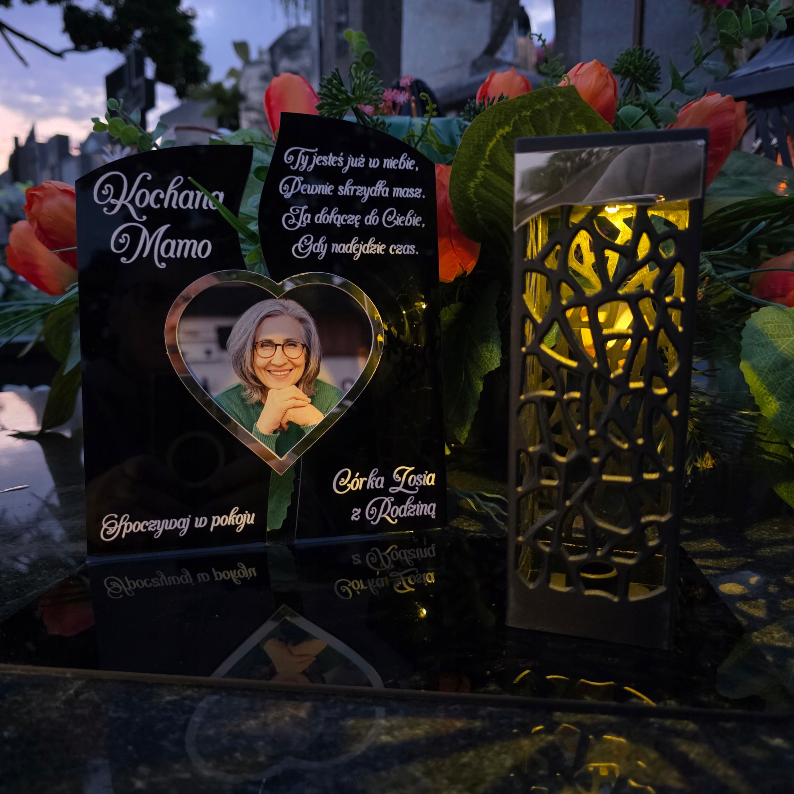 Світлодіодна статуетка Сонячного Соларда з фотографією на могильному кладовищі