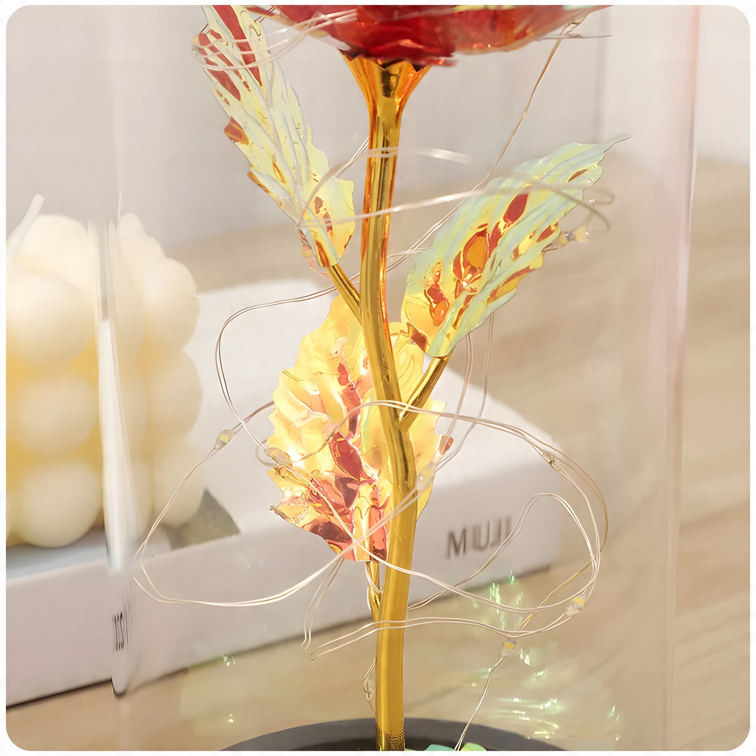 ВІЧНА СВІТЛОДІОДНА ТРОЯНДА, ЩО СВІТИТЬСЯ У СКЛІ, ЯК ПОДАРУНОК ДЛЯ ЇЇ НА ДЕНЬ СВЯТОГО ВАЛЕНТИНА + КОРОБКА