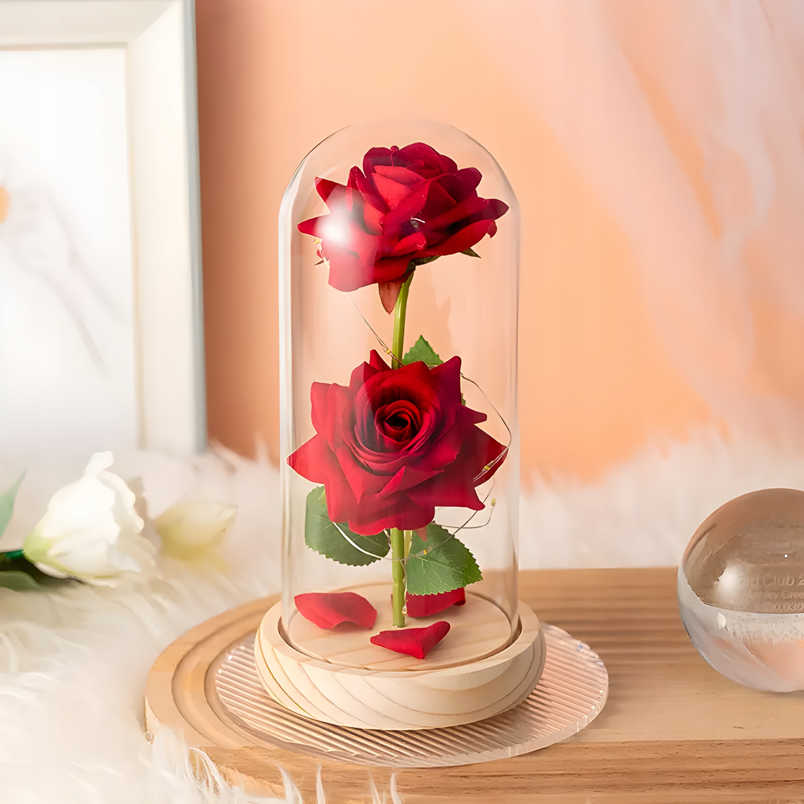 ✨Відкрийте для себе магію та довговічність справжніх почуттів з нашим ексклюзивним набором ДВОХ Вічних Троянд у Склі зі світлодіодним підсвічуванням.
