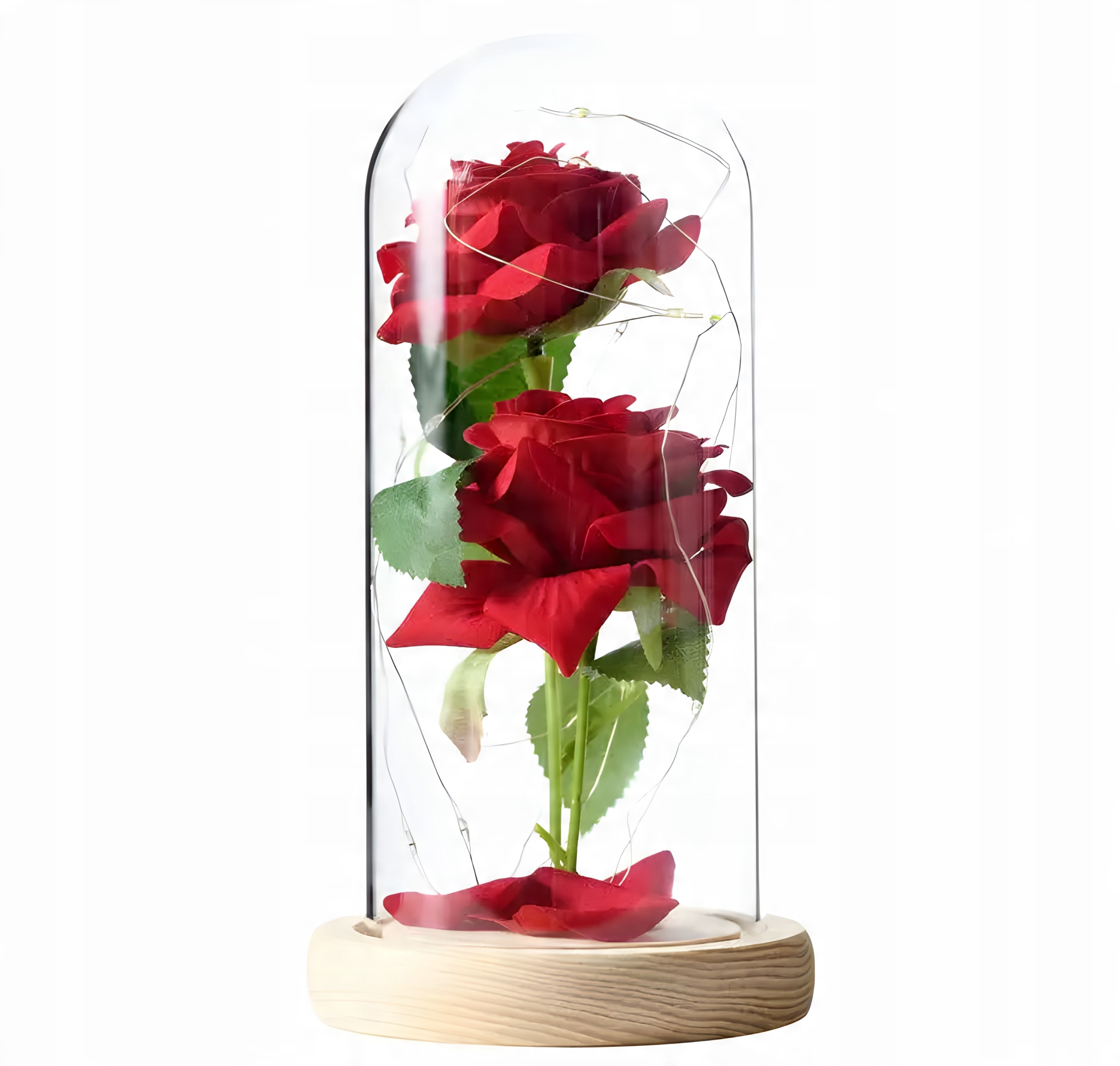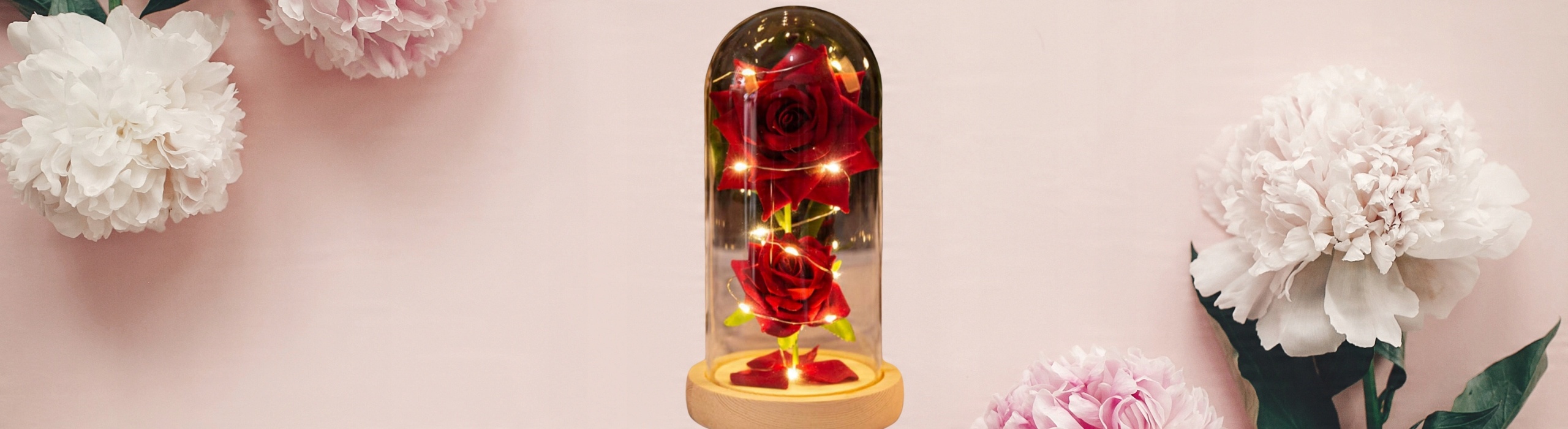 ✨Кожна троянда, символ вічного кохання, краси та вдячності, ретельно упакована під скляним куполом, підсвічується теплим світлодіодним світлом, створюючи унікальний візуальний ефект. Ідеальний подарунок для жінок, які цінують квіти, довговічність і унікальність.
