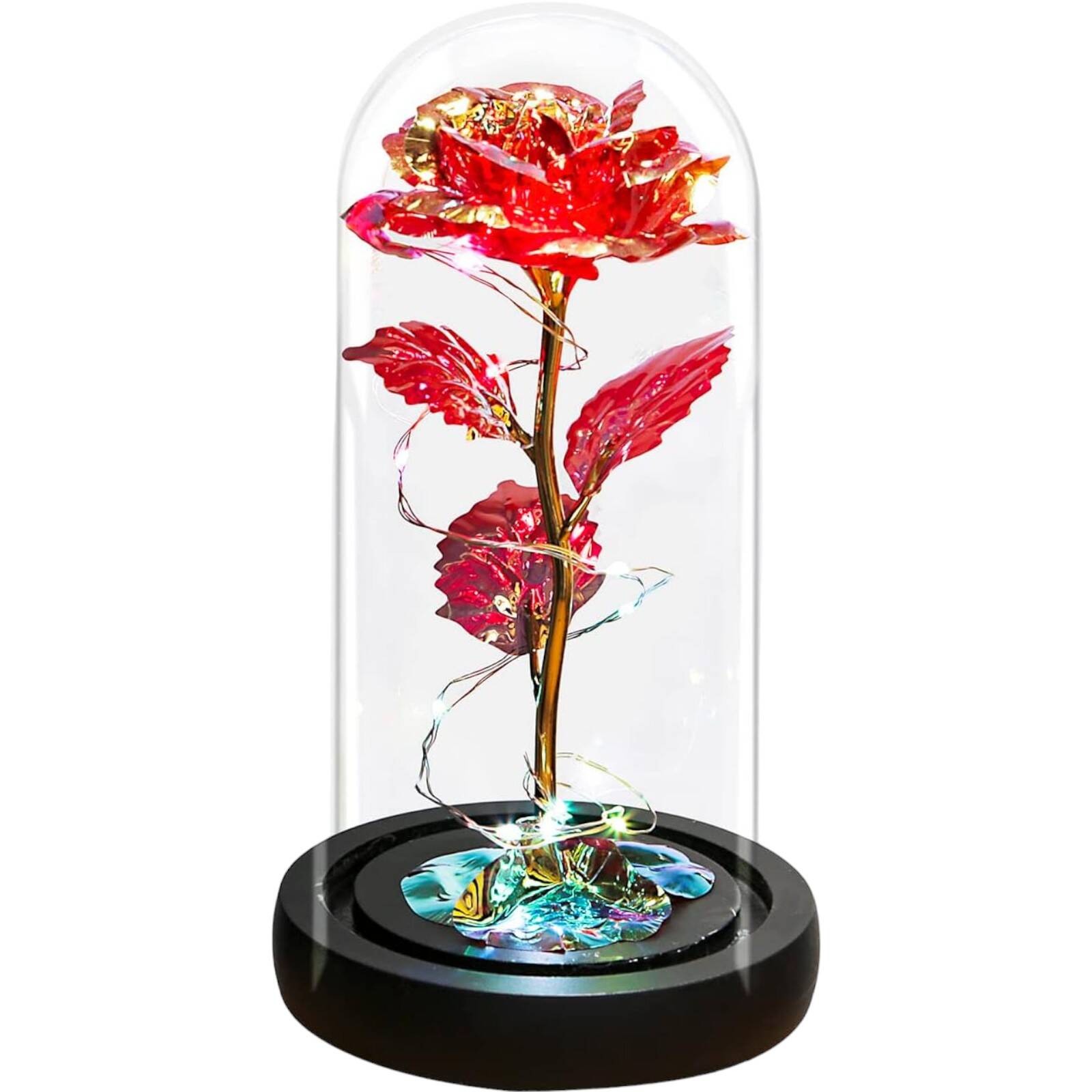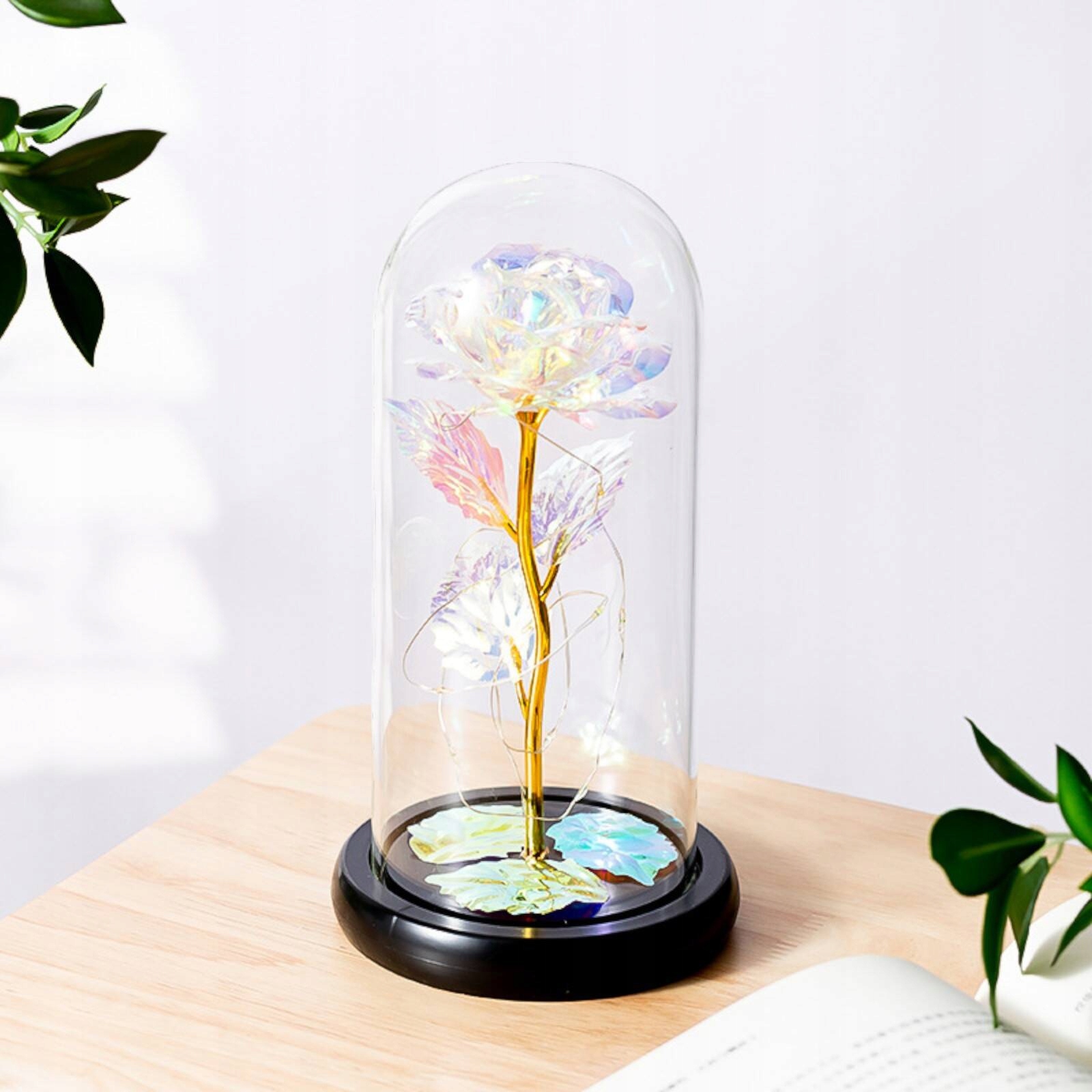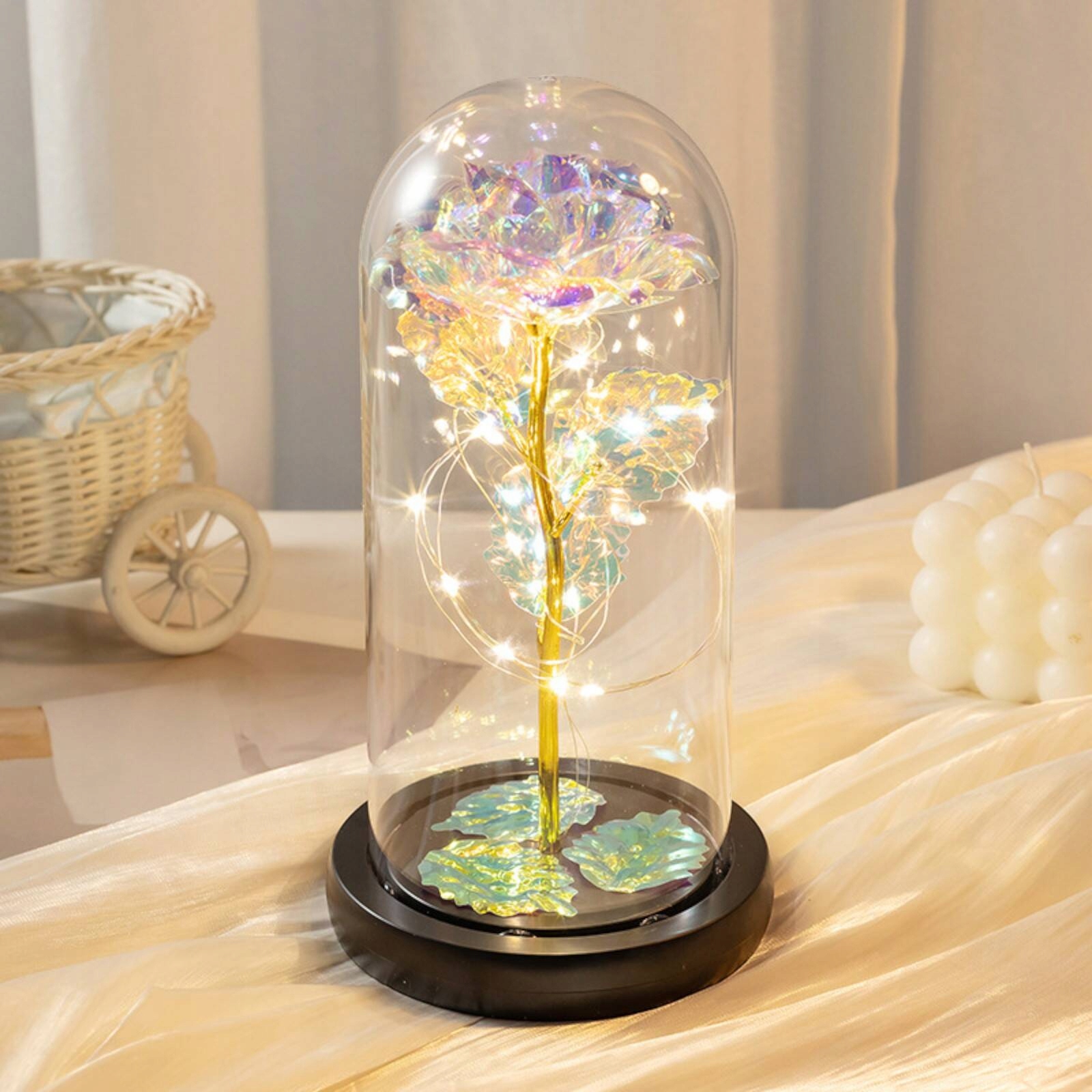 ВІЧНА ТРОЯНДА У СКЛІ, ДЕННИЙ ПОДАРУНОК ДЛЯ БАБУСІ ТА ДІДУСУ, ОСВІТЛЕННЯ LED