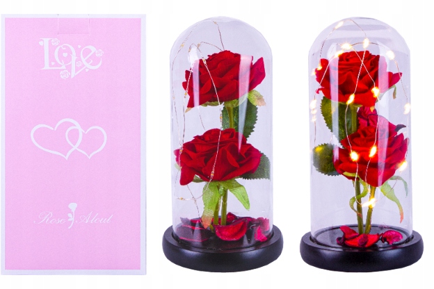 ВІЧНА ТРОЯНДА У СКЛІ, СВІТІВНИЙ СВІТЛОДІОД, ІДЕЯ ПОДАРУНКУ ДЛЯ ЇЇ НА ЮВІЛЕЙ