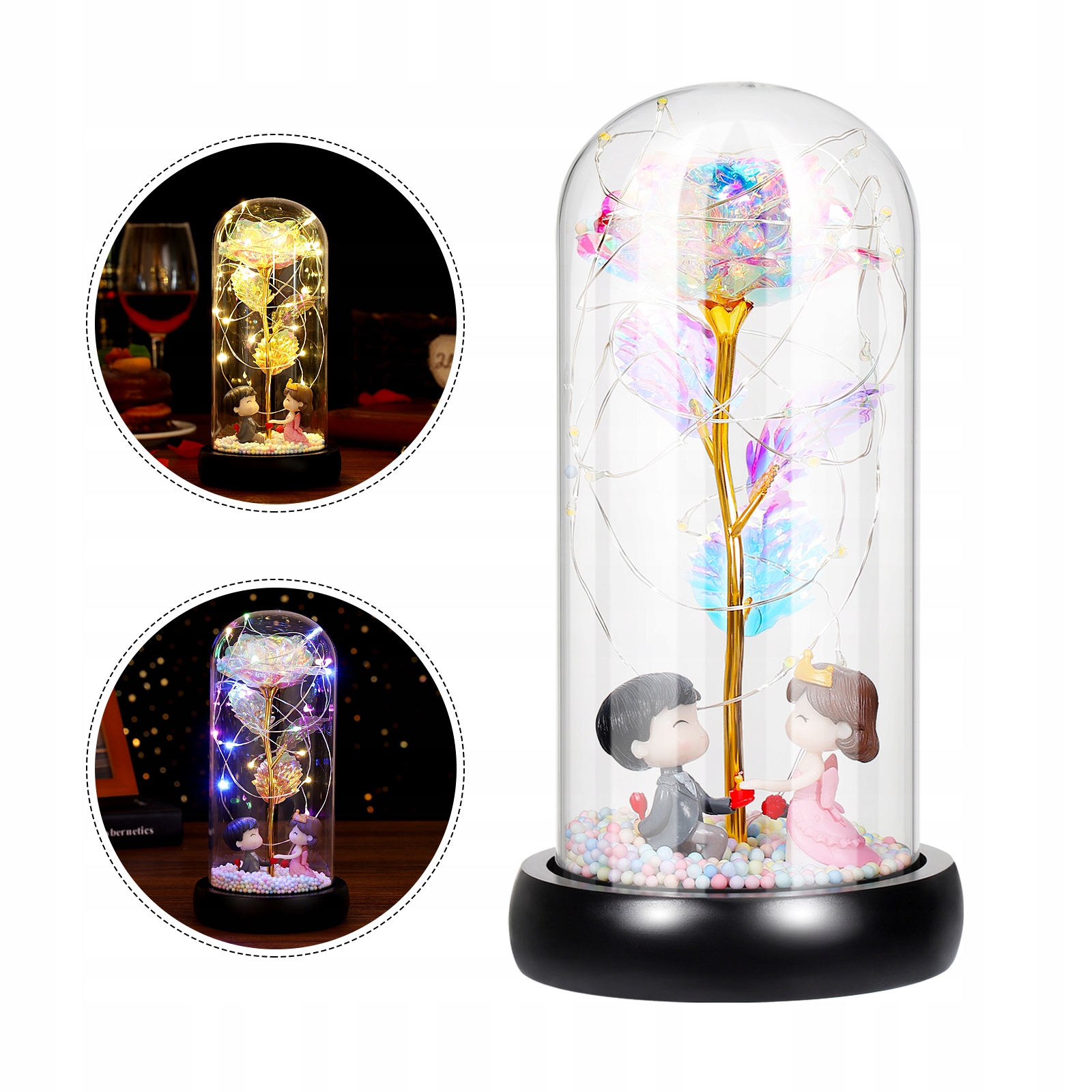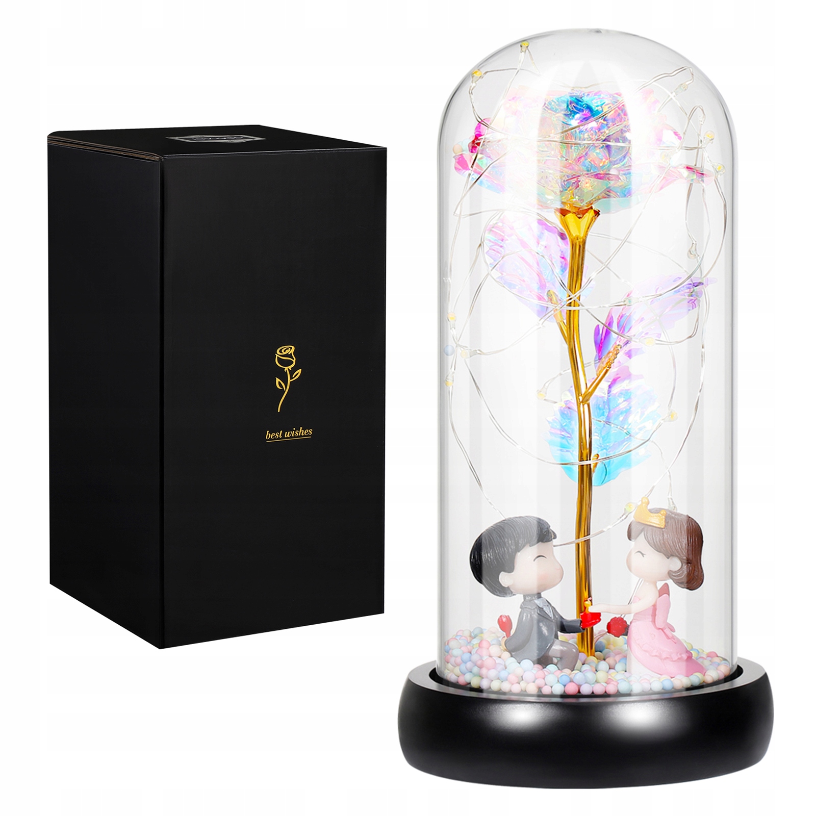 Скляний купол, що оточує вічну троянду, виконує захисну функцію від зовнішніх факторів, таких як пил або волога, одночасно підвищуючи його візуальну привабливість завдяки 3D-ефекту і повна видимість. Естетична подача та ефект «закритого світу» роблять троянду ще більш бажаним подарунком, захоплюючим та привертаючим увагу.