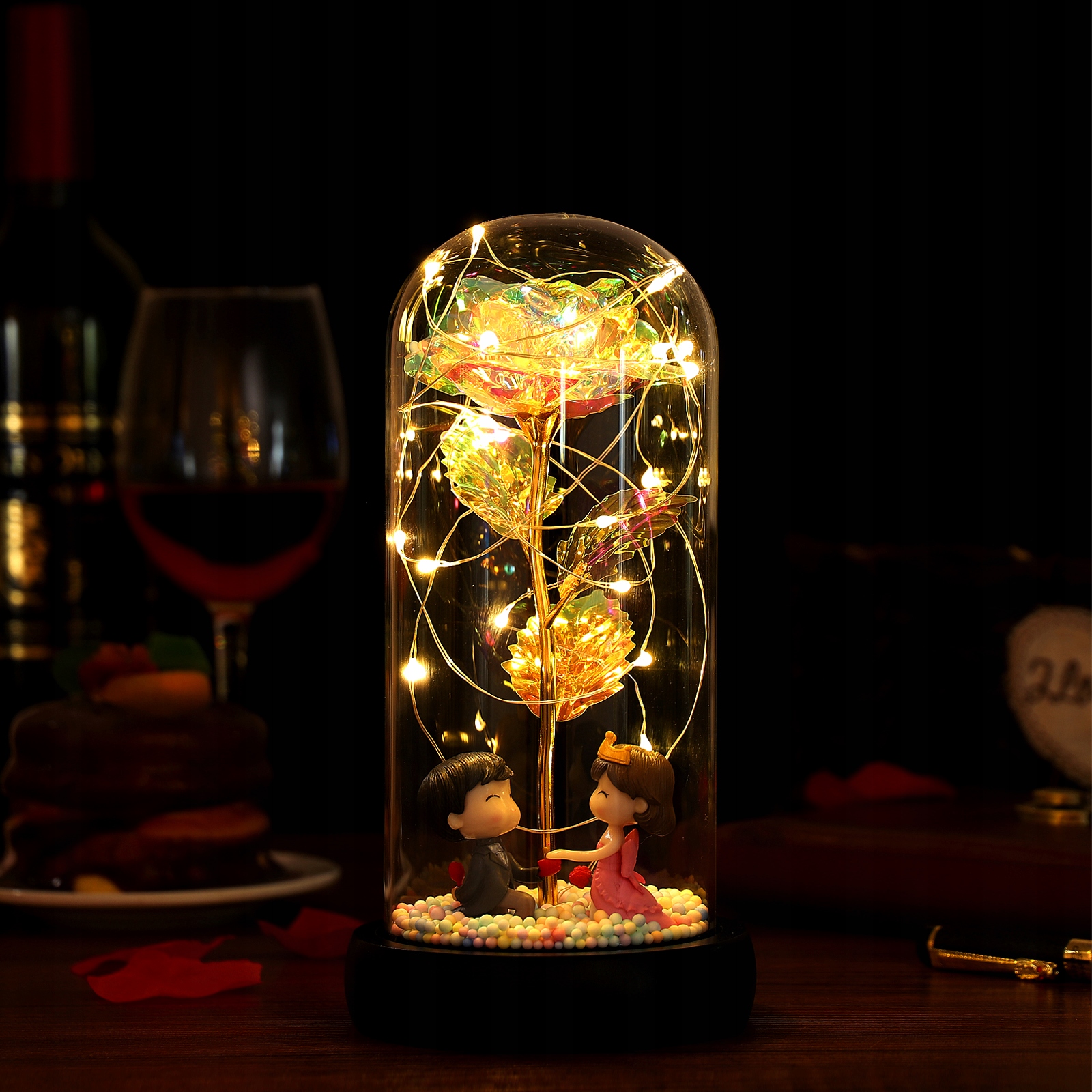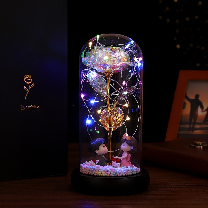 ВІЧНА ТРОЯНДА У СКЛІ, ПОДАРУНОК ДЛЯ ЇЇ ДО ЖІНОЧОГО ДНЯ, що світиться світлодіодами