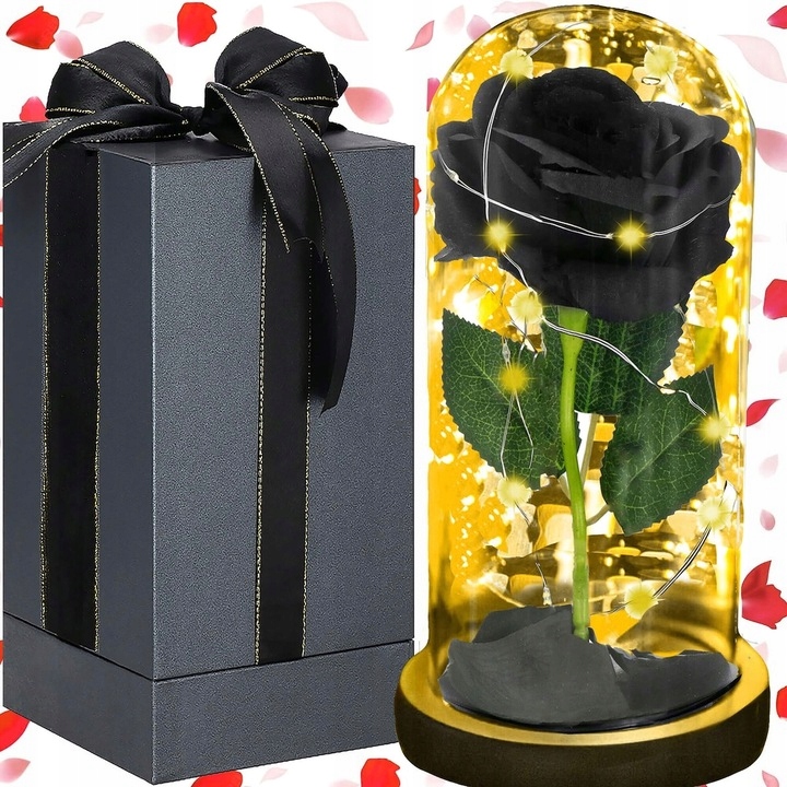 ВІЧНА ТРОЯНДА У СКЛІ, СВІТЯЧА СВІТЛОДІОДНА КОРОБКА, ПОДАРУНОК НА ДЕНЬ СВЯТОГО ВАЛЕНТИНА, ЧОРНИЙ