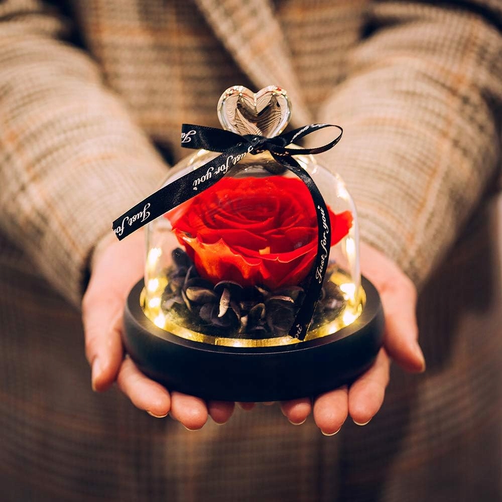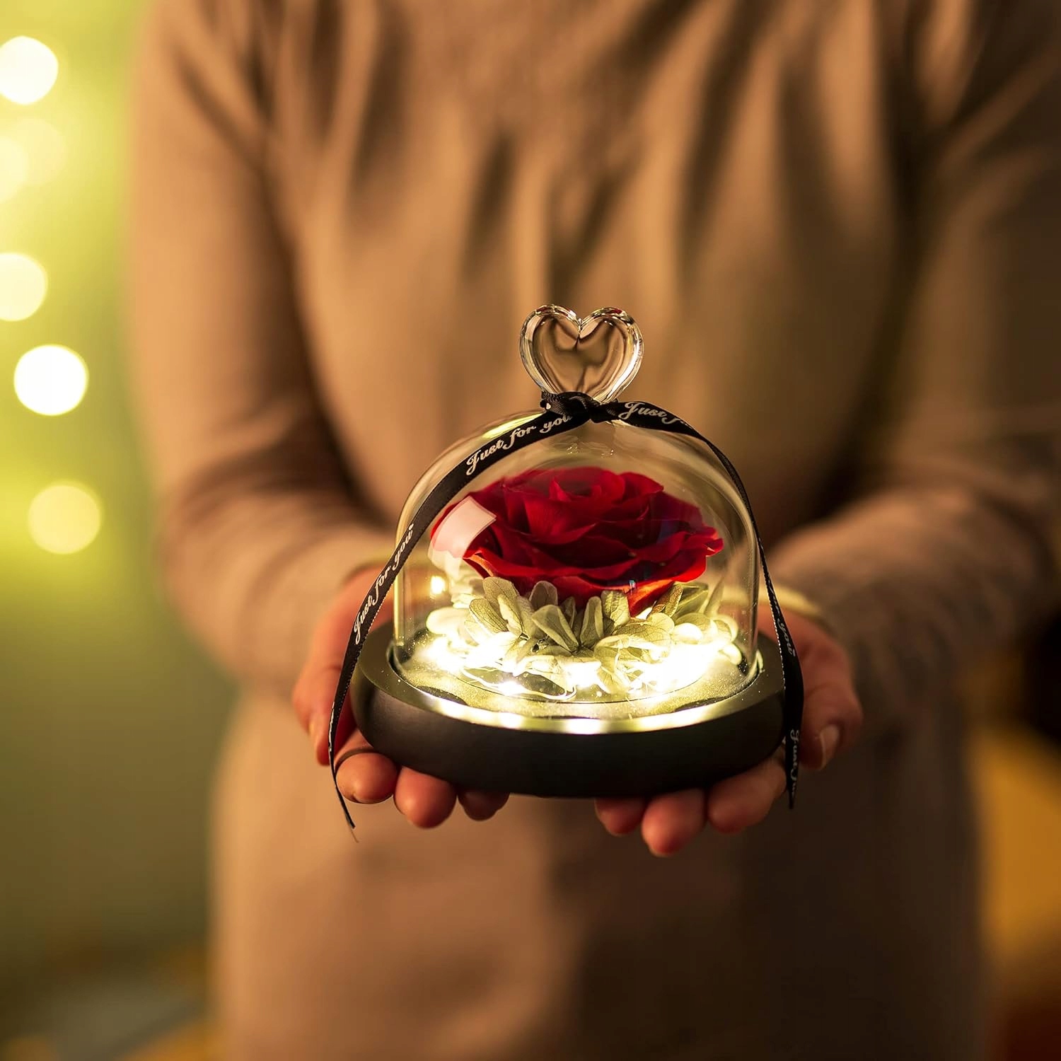 🌹【Креативні подарунки для жінок】Зачарована троянда в кришталевій та прозорій скляній обкладинці для дівчини, найкращої подруги, дружина, мати, дочка, день народження бабусі, річниця весілля, день святого Валентина, день подяки, різдво, день матері, найкращий вибір для заручин і пропозиції шлюбу.