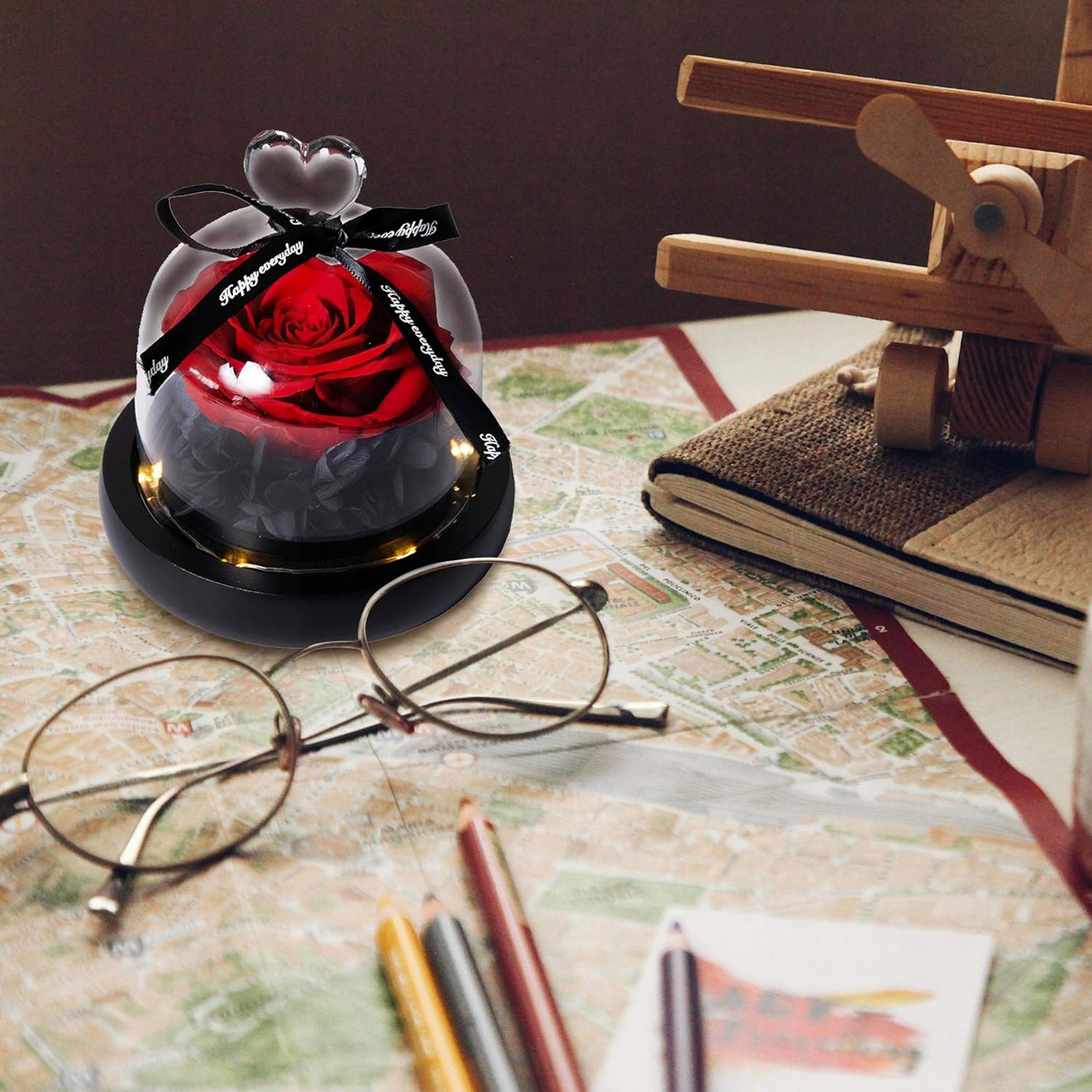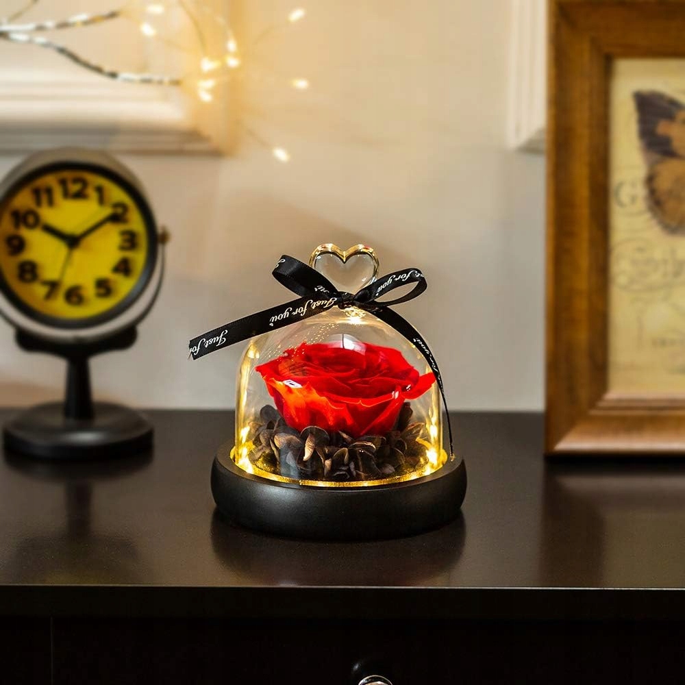 🌹【Яскраве світлодіодне світло 】 b> Світлодіодна смуга обертається навколо вічної троянди, а нижній вимикач включений. Яскраве світло висвітлює всю скляну кришку і дарує тепле світло вічним трояндам! Ви можете використовувати 3 адаптери живлення AAA (не входять у комплект), кроки роботи дуже прості. Нею можна прикрасити кімнату або створити романтичну атмосферу вдень і вночі, що є одночасно красивим і практичним.