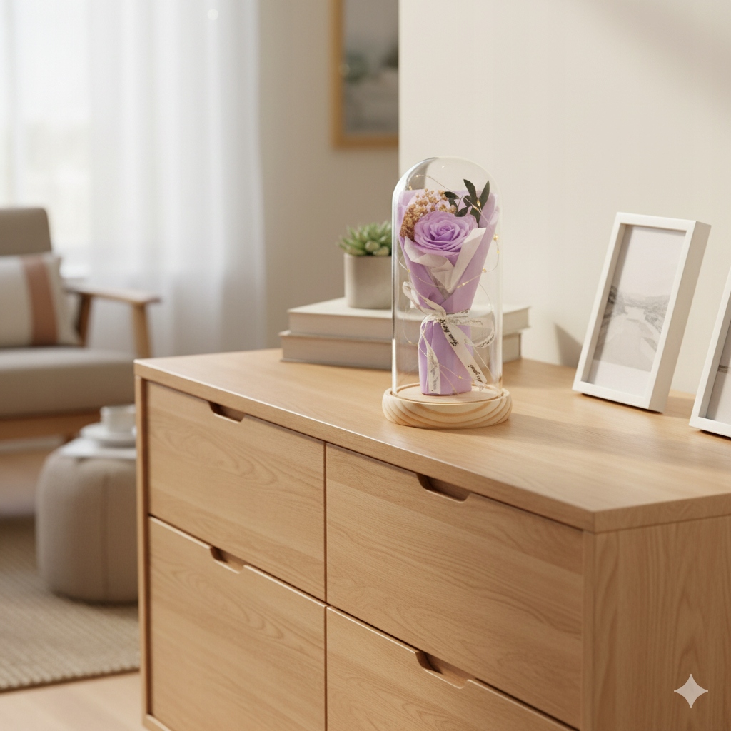 ✨ Довговічність: вічна троянда у склі вражає своєю стійкістю до плину часу та не потребує догляду.