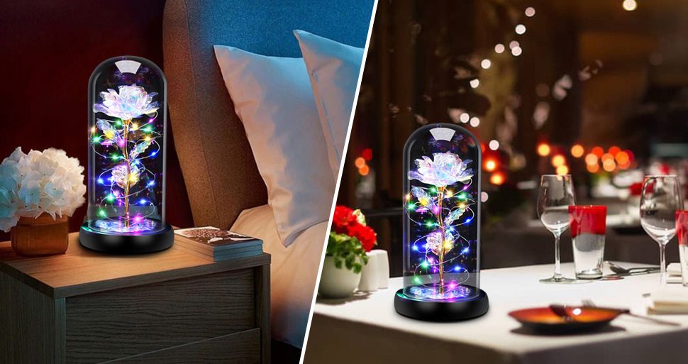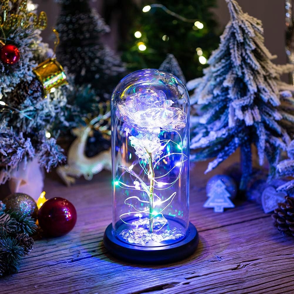 ВІЧНА ТРОЯНДА У СКЛІ Світлодіодна лампа Нічник ПОДАРУНОК 20 світлодіодів Штучні квіти