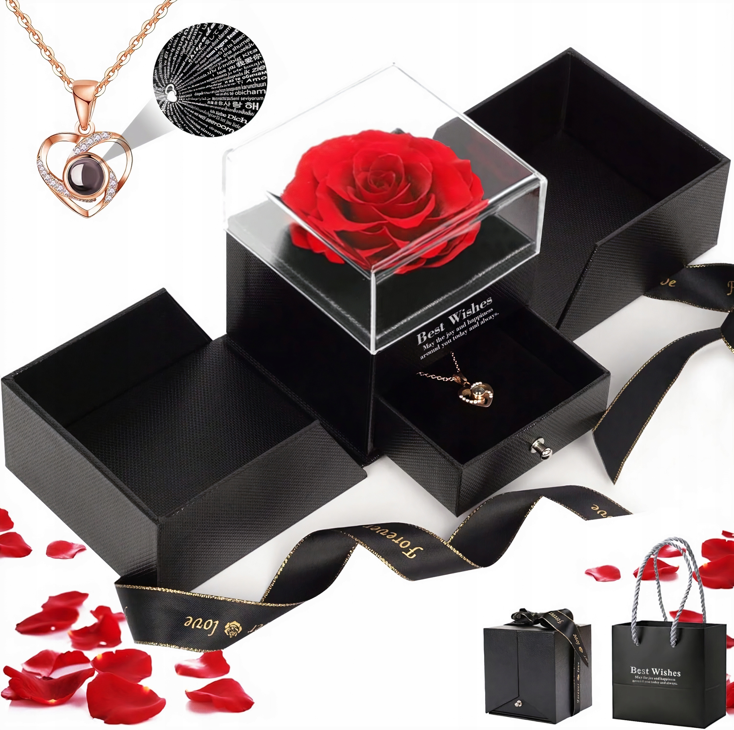 ❤️ ПОДАРУНКОВА КОРОБКА ВІЧНА ТРОЯНДА У СКЛЯНІЙ КОРОБЦІ + НАМИСТО ❤️