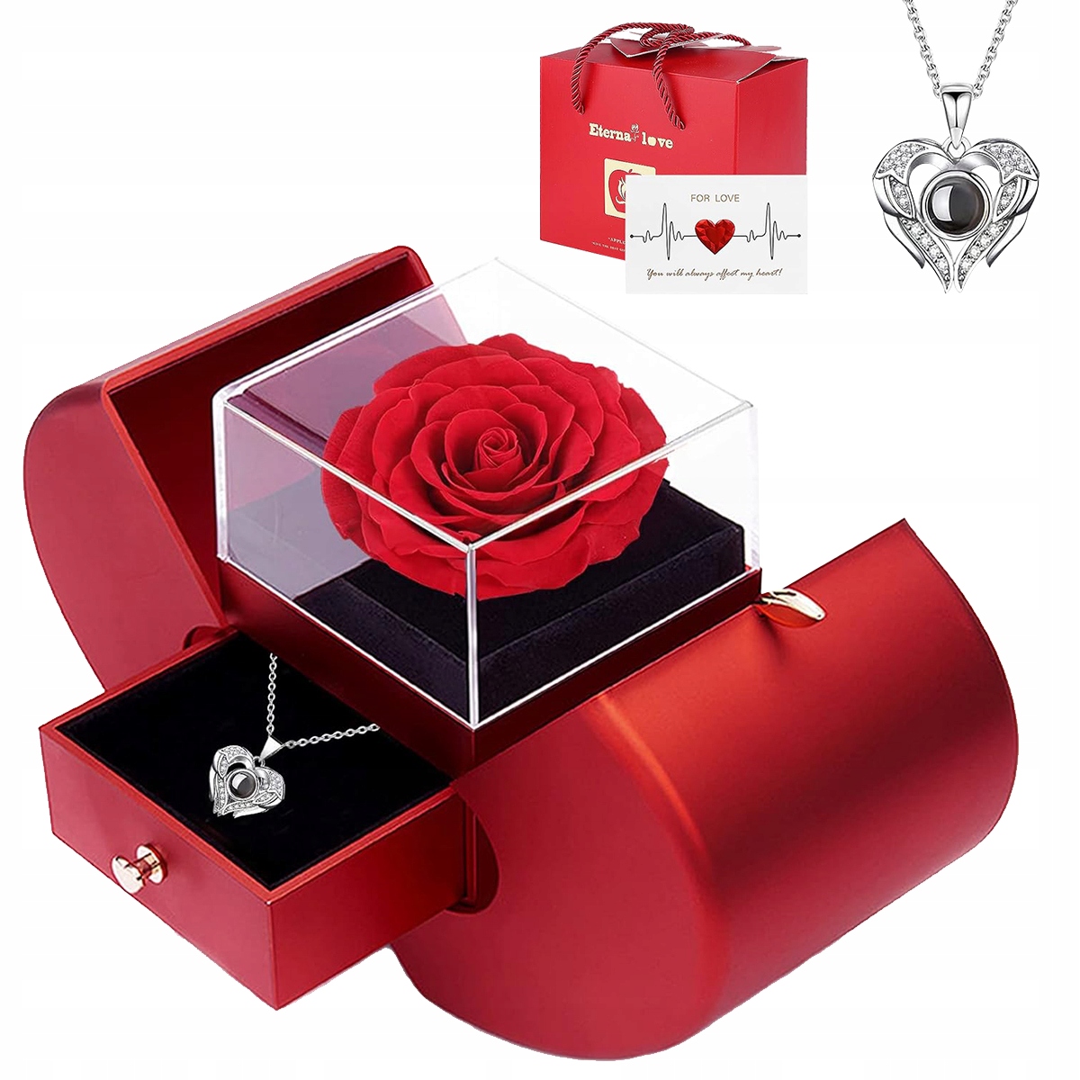 ❤️ 【Що ви отримаєте】Набір намиста зі збереженою трояндою включає намисто зі словами «Я люблю тебе» 100 мовами, подарункову коробку зі справжньою червоною трояндою, вітальну листівку (ви можете заповнити її самостійно) і паперовий подарунковий пакет.