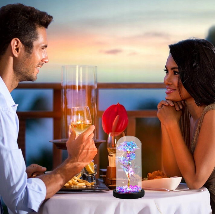 Вічна троянда зі світлодіодного скла — це унікальний символ тривалої любові, відданості та краси, яка ніколи не зникає. Елегантна прикраса, натхненна класичною трояндою, укладена в скляний купол і тонко підсвічена світлодіодними лампами, створює чарівну та романтичну атмосферу в будь-якому інтер’єрі.