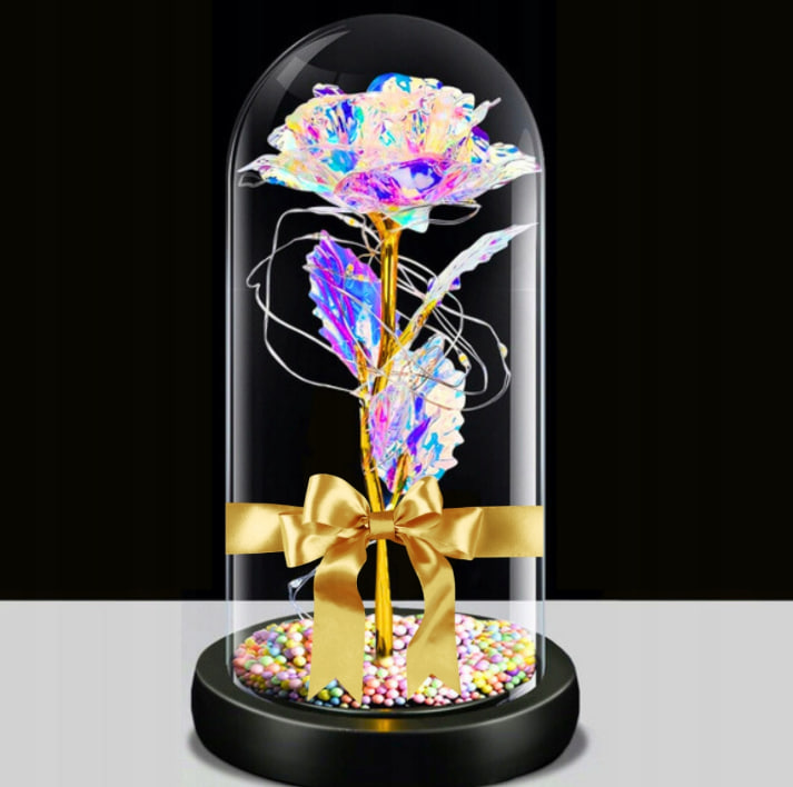 Вічна троянда у скляному куполі зі світлодіодами – реалістичне оформлення подарунка