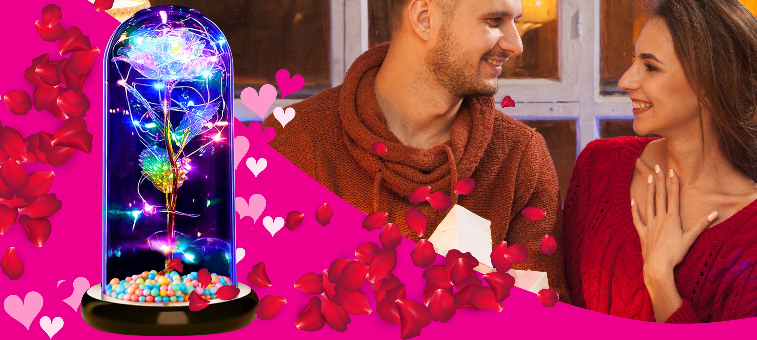 Вічна троянда у скляному світильному світлодіодному подарунку для Дня Святого Валентина Мати
