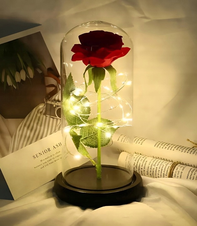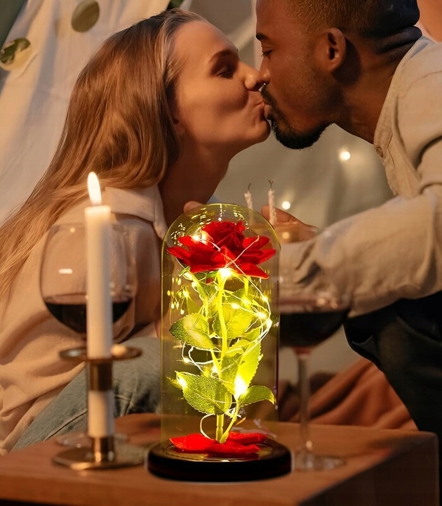 ВІЧНА ТРОЯНДА У СКЛІ, СВІТІВНИЙ СВІТОДІОД, ПОДАРУНОК ДО ДНЯ СВЯТОГО ВАЛЕНТИНА, ЖІНОЧОГО ДНЯ