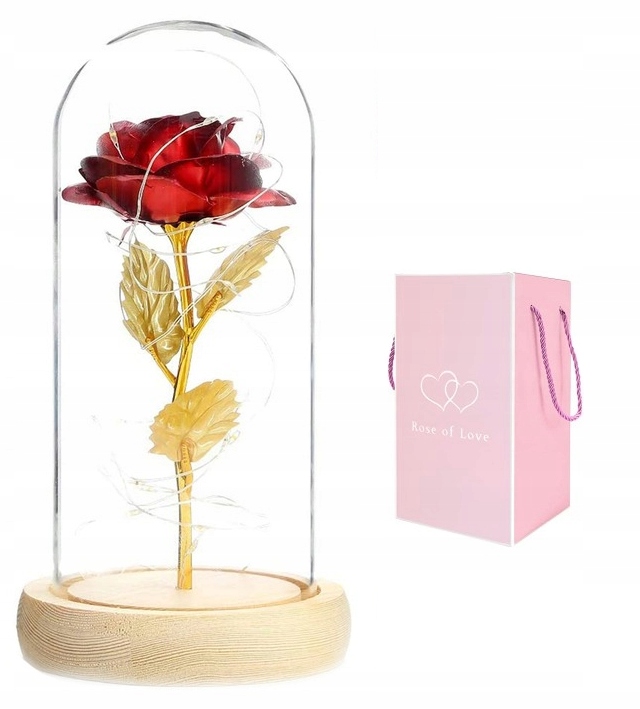 - Скляний купол , дерев'яна підставка та троянда, підсвічена світлодіодними лампами, створюють ідеальне ціле
