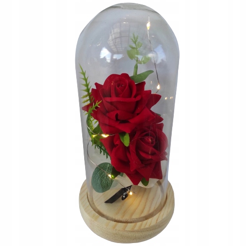 ➡ 2 оксамитові троянди з додаванням зелених папоротей та евкаліпта знаходяться в лампах, виготовленому з високоякісного скла (скло прозорий і довговічний). Навколо троянди є світлодіодна стрічка, яка робить троянду дуже чарівною вночі (красиво виділена). Просто увімкніть перемикач, світлодіоди освітлюються у легкому, теплому кольорі, створюючи унікальну та романтичну атмосферу для романтичної вечері, сімейну вечерю, зустріч, спокійний, розслабляючий вечір тощо