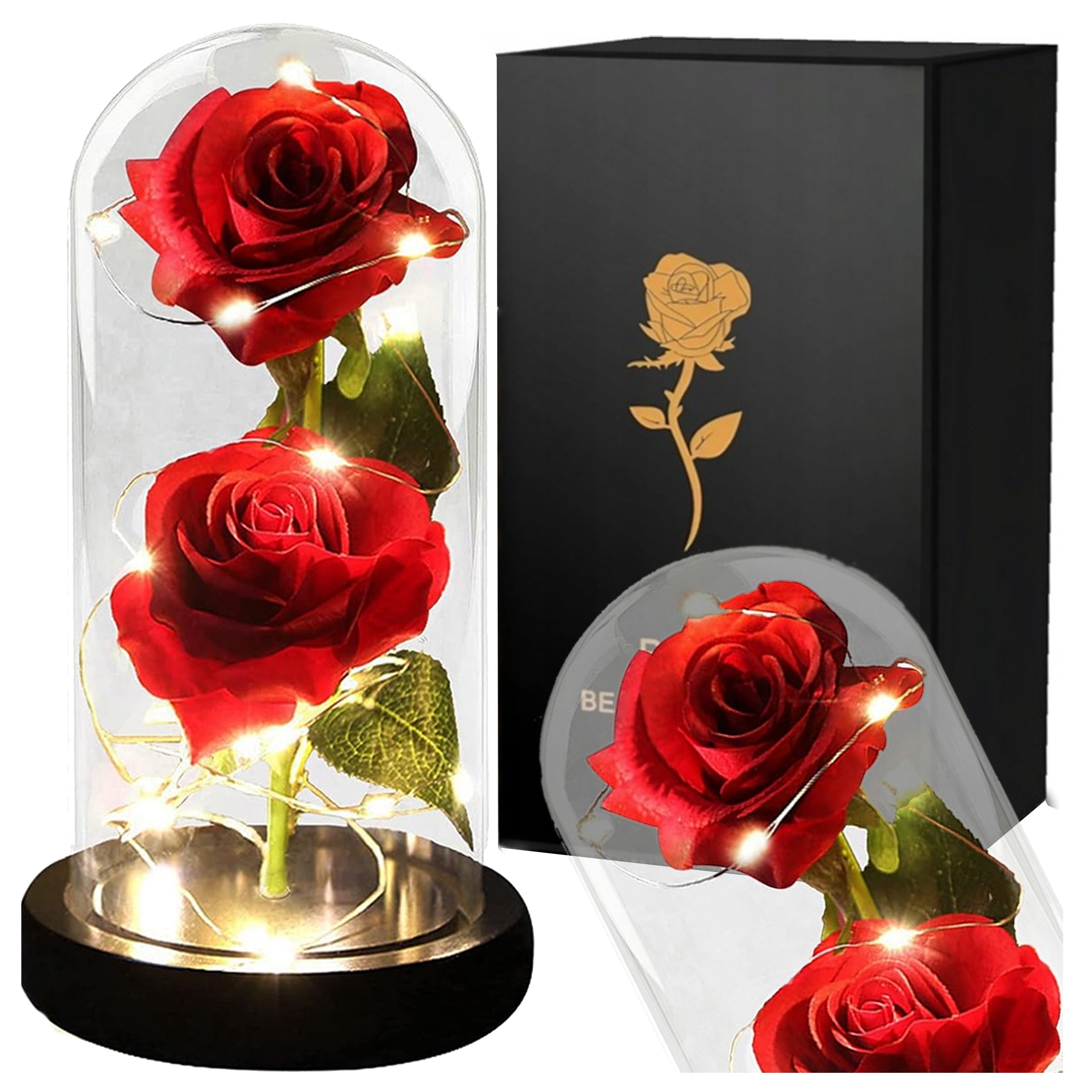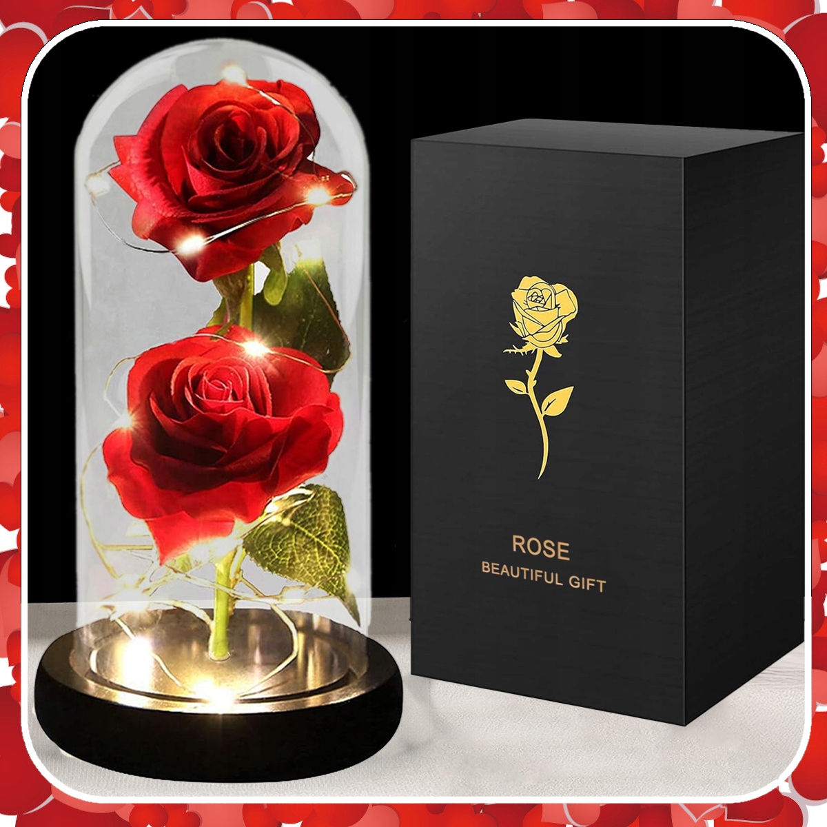 ❤ Вічна троянда в склі - це подарунок, який говорить більше, ніж слова. 4 Розміщений у скляному куполі, в компанії тонкого світлодіодного освітлення, створює унікальний ефект, який радує кожного одержувача Kobięta і надасть інтер'єру магічну атмосферу.