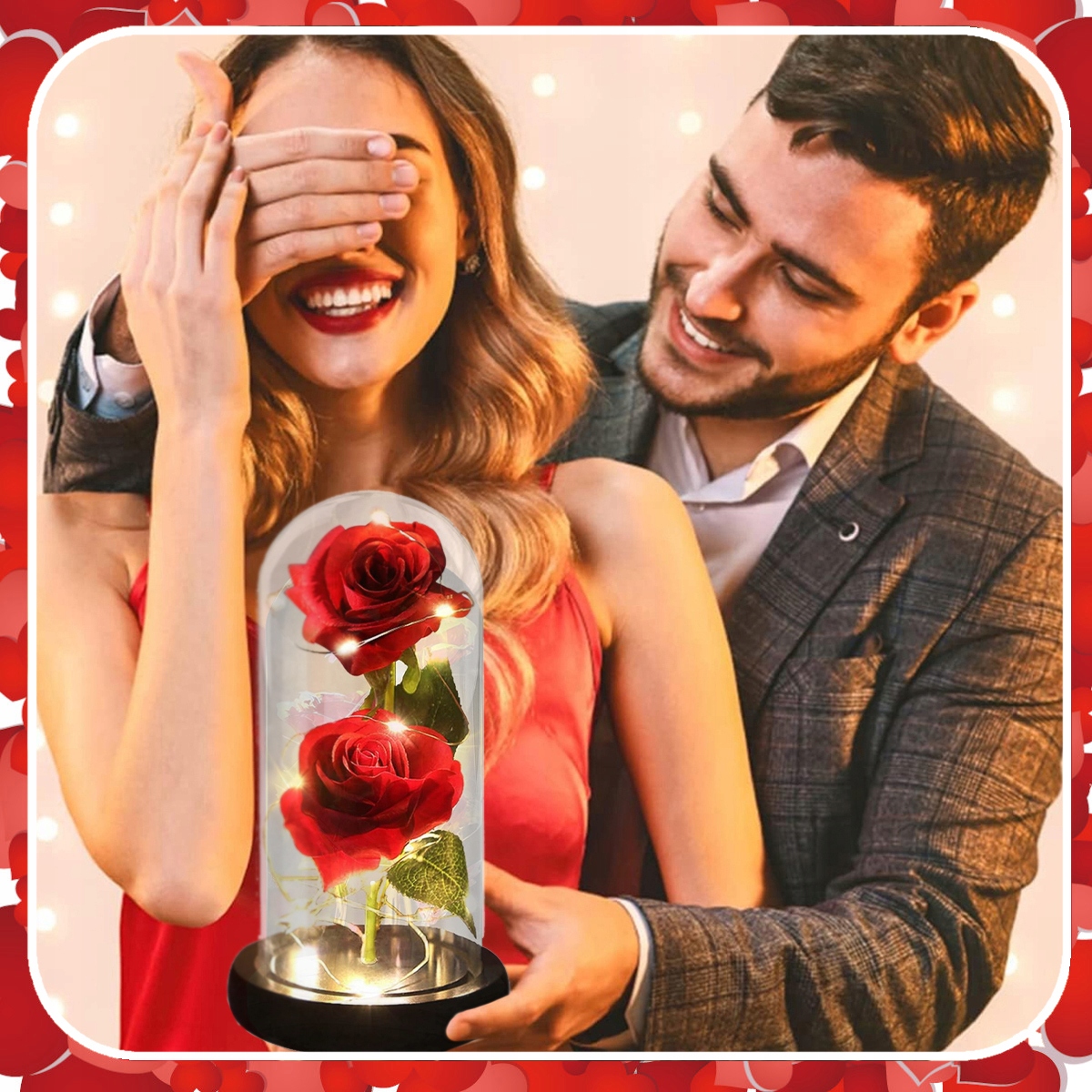 Вічна троянда в скляному світильному світлодіодному наборі для Дня Святого Валентина + коробка