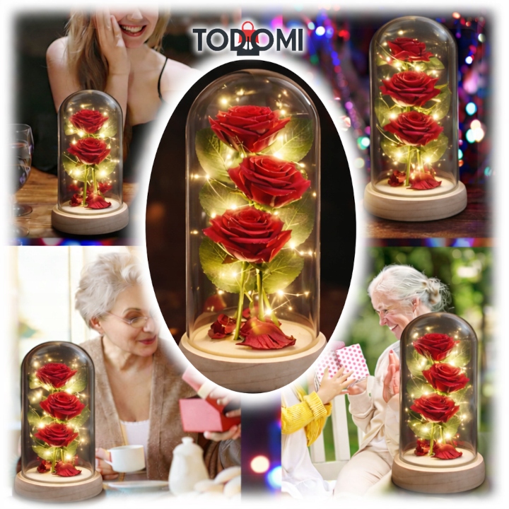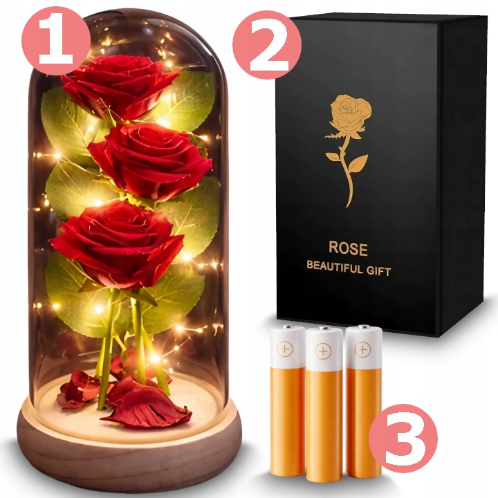 ВІЧНА ТРОЯНДА У СКЛІ, СВІТІВНИЙ СВІТЛОДІОД, ІДЕАЛЬНА ІДЕЯ ПОДАРУНКУ НА РІЗДВО