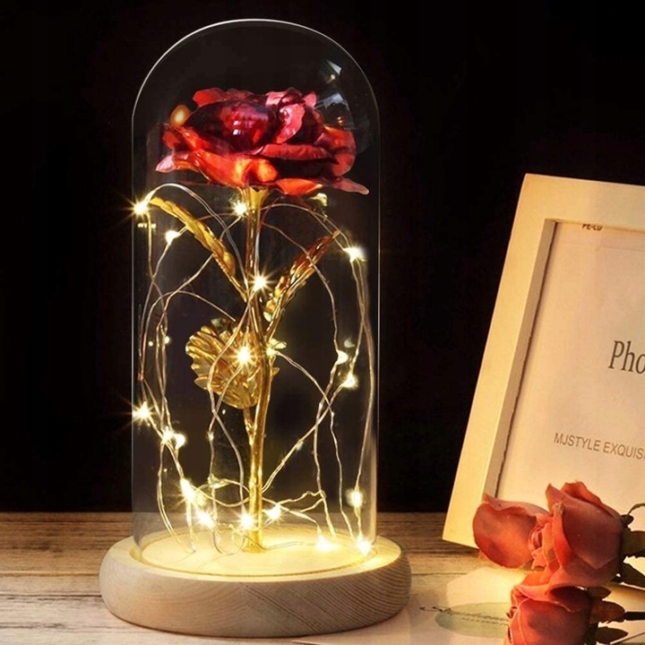 - Скляний купол , дерев'яна підставка та троянда, підсвічена світлодіодними лампами, створюють ідеальне ціле
