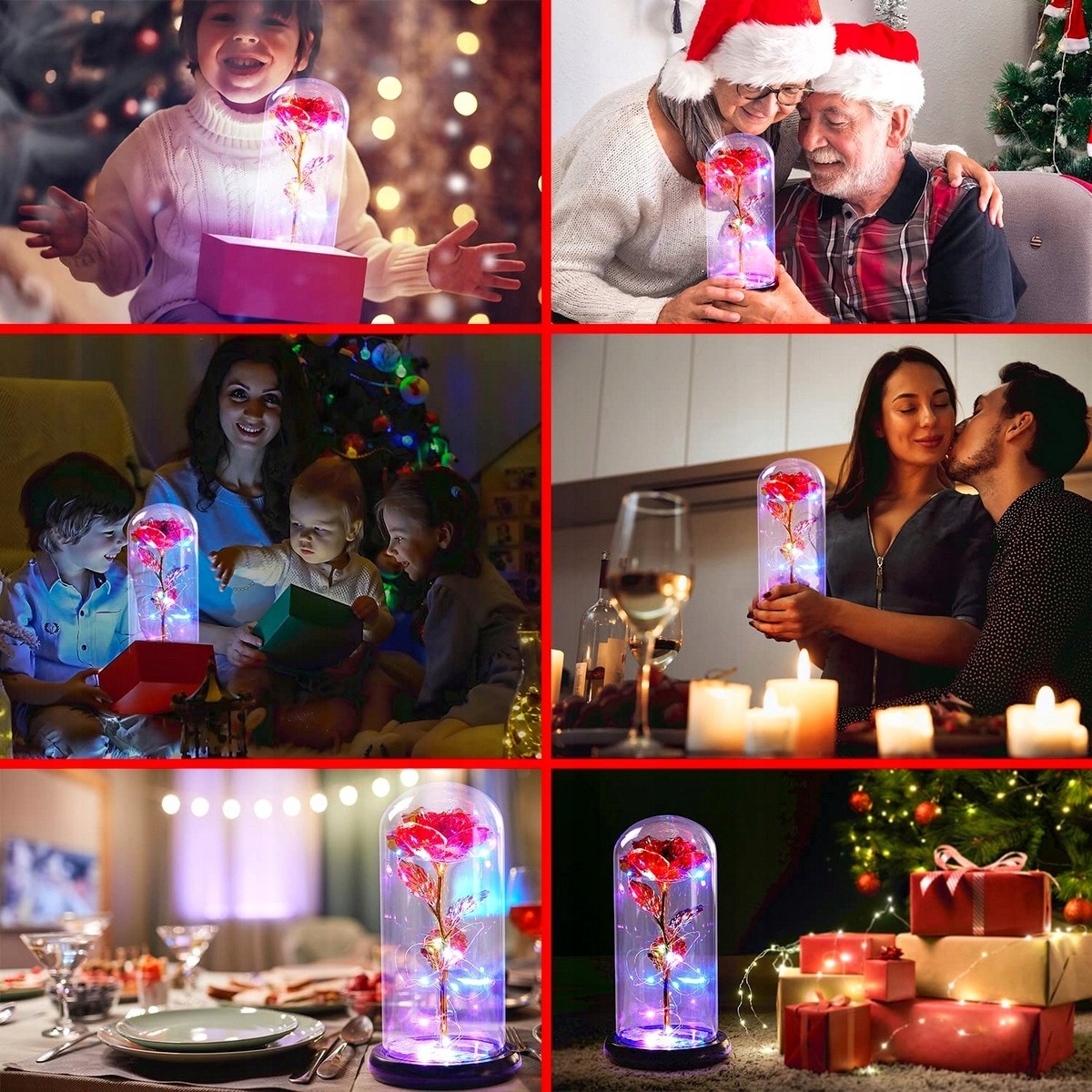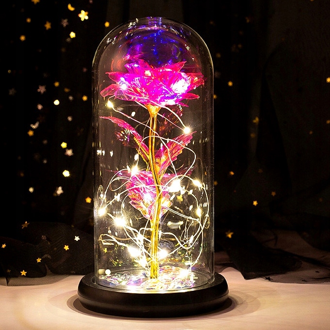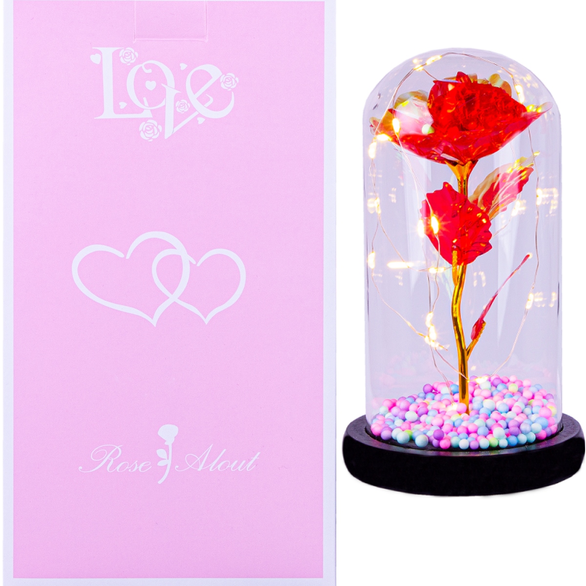 ВІЧНА ТРОЯНДА У СКЛІ СВІТЛОДІОДНІ СВІТЛІ ДНЯ СВЯТОГО ВАЛЕНТИНА