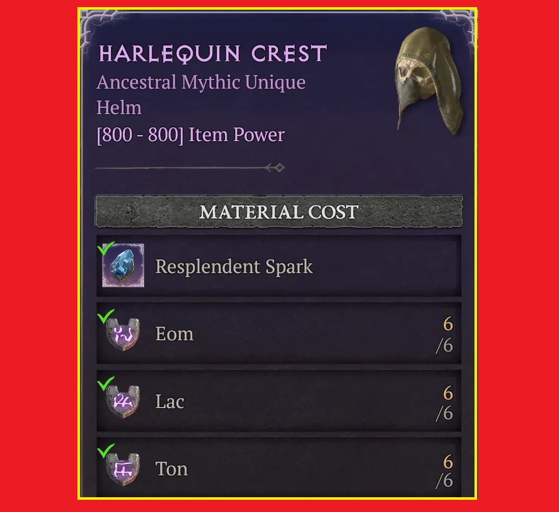 Вічний арлекін Гребінь Shako Run Set Вічність Diablo 4 Gold