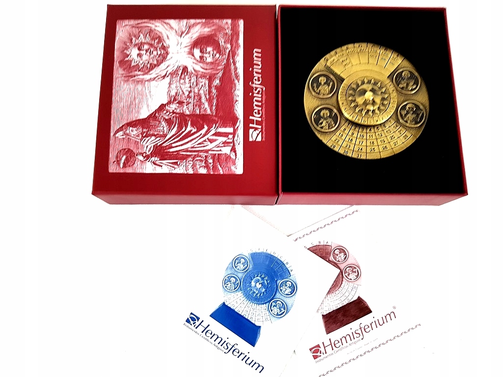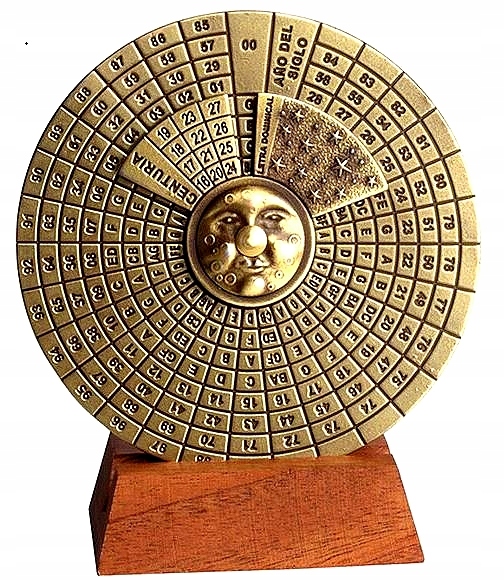 Як користуватися календарем ? Всупереч видимості, принцип пошуку дат простий. Припустимо, ми хочемо перевірити, який день тижня 2 березня 2019 року. Для цього повертаємо календар у бік місячної грані. Шукаємо на рухомому кільці цифру 20 і вирівнюємо її з цифрою 19, яку знаходимо на нерухомому циферблаті. Потім переміщаємо цілик з написом Letra Dominical на 19, що дозволяє перевірити, яка буква була під 20, коли 20 і 19 були в одному рядку. У нашому випадку це буква F. Наступний хід з боку сонячної грані. Ми встановлюємо місяць березень, позначений на рухомому кільці літерами MAR, під F. Тоді ми бачимо, що 2-й день місяця - тепер ми дивимося на нижню частину нерухомого циферблата, що показує дні від 1 до 31, збігається на літеру S, що означає, що 2 березня 2019 р . це S - субота. У разі високосного року вийде, що в цілику буде 2 букви. Тоді правило полягає в тому, що перше стосується дня до 1 березня певного року, а друге застосовується до кожного дня після 1 березня цього року. Решта кроків, як описано вище. Приклад: давайте перевіримо, який день тижня 10 червня 2020 року. На стороні Місяця на нерухомій ставимо 20 рухомого циферблата на 20. Користуємося ціликом і бачимо, що літери D і E розташовані на 20. Ми говоримо про дату після 15 березня, тому враховуємо букву Д. З цією інформацією ми переходимо на сторінку зі смайликом сонечка. JUN - ми поставили червень під D. Внизу ми бачимо, що 10 червня під X - miercoles - середа. В основу календаря покладені назви місяців і днів тижня іспанською мовою. Нижче наведено переклад: Назви місяців: Ene- enero - January Feb - febrero - February Mar - marzo - March Abr- abril - April May- mayo - May Jun - junio - June Jul - julio - July Ago- agosto - August Sep - septiembre - September Oct - octubre - October Nov - november - November Dic - diciembre – December Дні тижня: Дні тижня: L - lunes - Monday. M - martes - вівторок. X - miércoles - середа. J - jueves - четвер. V - viernes - п'ятниця. S - sábado - субота. D - domingo – Sunday Centuria – age Letra dominical – Sunday letter