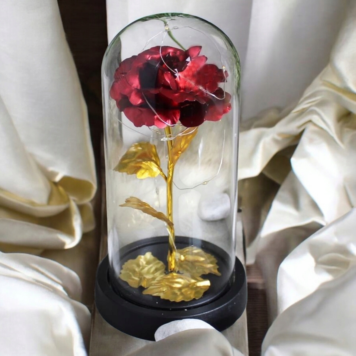 Красива вічна світлодіодна троянда в склі - гравірований напис