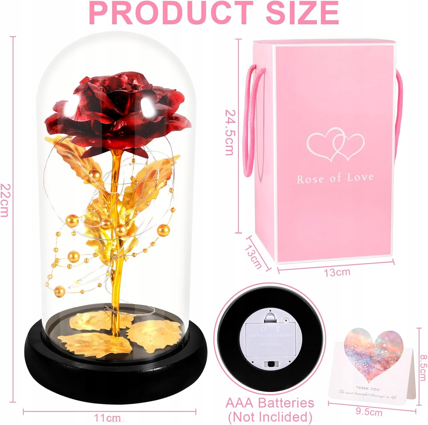 - Вічні троянди, виготовлені з високої якості Матеріал - наші вічні пелюстки квітки та стебла виготовлені з пластику із покритою золотом фольгою. Скляний купол вічного набору з трояндою виготовлений з високотемпературного борозилового скла прозорий, без забруднення та легко очистити. Основа виготовлена з високоякісного дерев’яного матеріалу, стабільна, непроста в спорожненні, ретельно виготовлення, гладка поверхнева трояндова світло в склі дуже м’яка, не сліпа і може бути використана як ліжка. Дозвольте собі солодкий сон. Тепле і красиве світло - це ще один незабутній акцент вечері для свічок, що дає романтичну атмосферу річниці та святкування. Дерев’яна база,