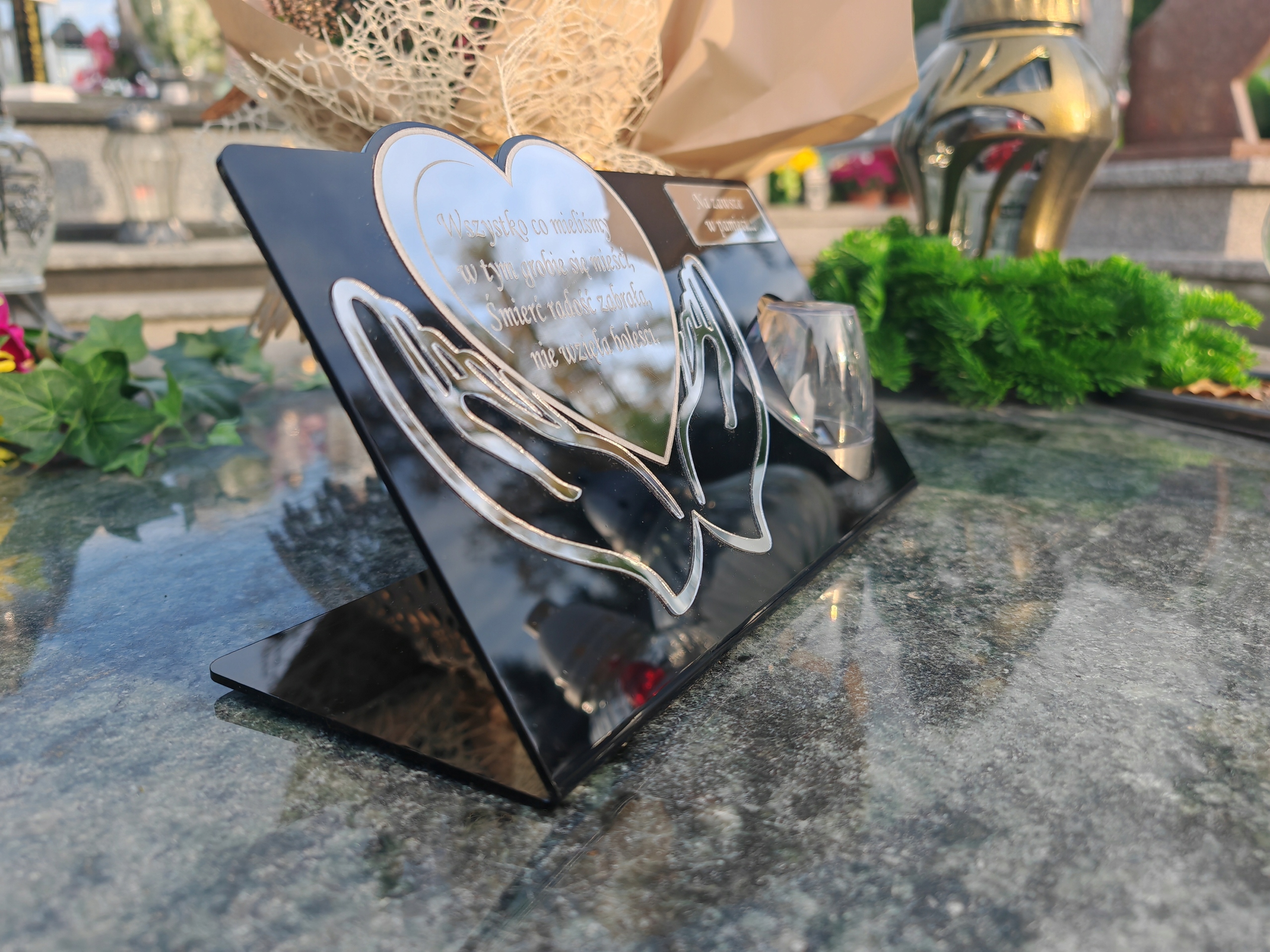 Збережіть пам'ять про кохану людину елегантним і довгим способом. Наш персоналізований сонячний свічник — це не лише гарна прикраса надгробка, а й символ пам’яті, який освітлюватиме місце спочинку після настання темряви.