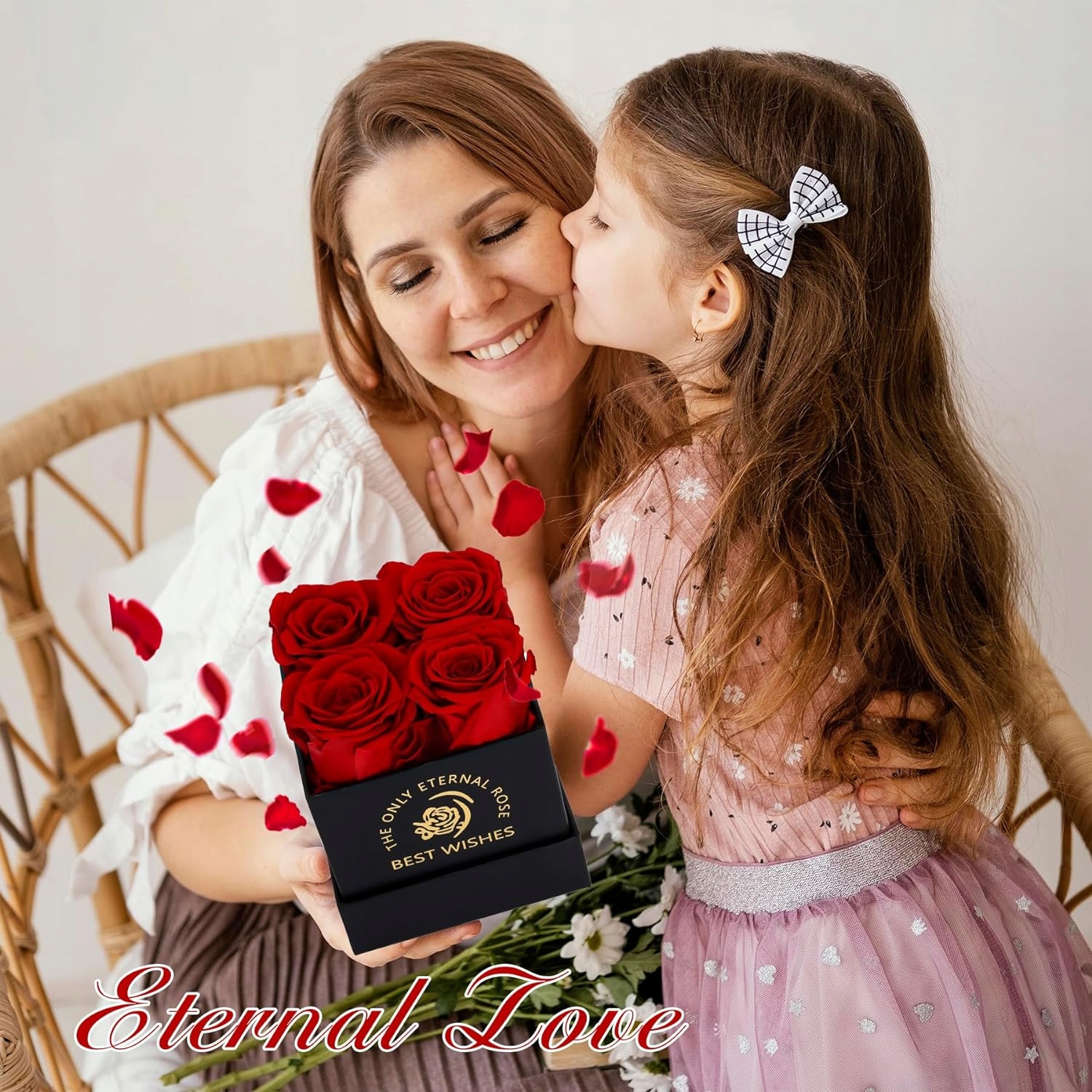 Вічний трояндовий набір з 4 вічних троянд у коробці романтичного подарунка для неї