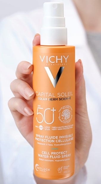 CELL PROTECT WATER FLUID SPRAY SPF 50+ забезпечує вдосконалений 4-рівневий захист (UVB, UVA, тривале UVA-випромінювання та антиоксидант), щоб запобігти пошкодженню сонцем навіть на рівні клітин шкіри.