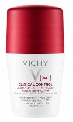 Антиперспірант VICHY, який гарантує захист до 96 годин, був створений спеціально для людей, які прагнуть максимального контролю в кожній ситуації, навіть у найбільш стресовій. Забезпечує високий і тривалий захист від потовиділення та пов'язаного з ним неприємного запаху. Чудово зменшує надмірне виділення поту та забезпечує комфорт. Vichy містить активні інгредієнти з антибактеріальними властивостями та здатністю поглинати вологу, включаючи мінеральні солі, які ефективно звужують отвори потових залоз, таким чином ефективно зменшуючи процес потовиділення. Він має рідку консистенцію, яка дуже приємна для нанесення та залишає сухий фініш на шкірі. Vichy Clinical Control 96-hour є гіпоалергенним і не містить спирту, що забезпечує максимальну переносимість шкіри, включно з чутливою.