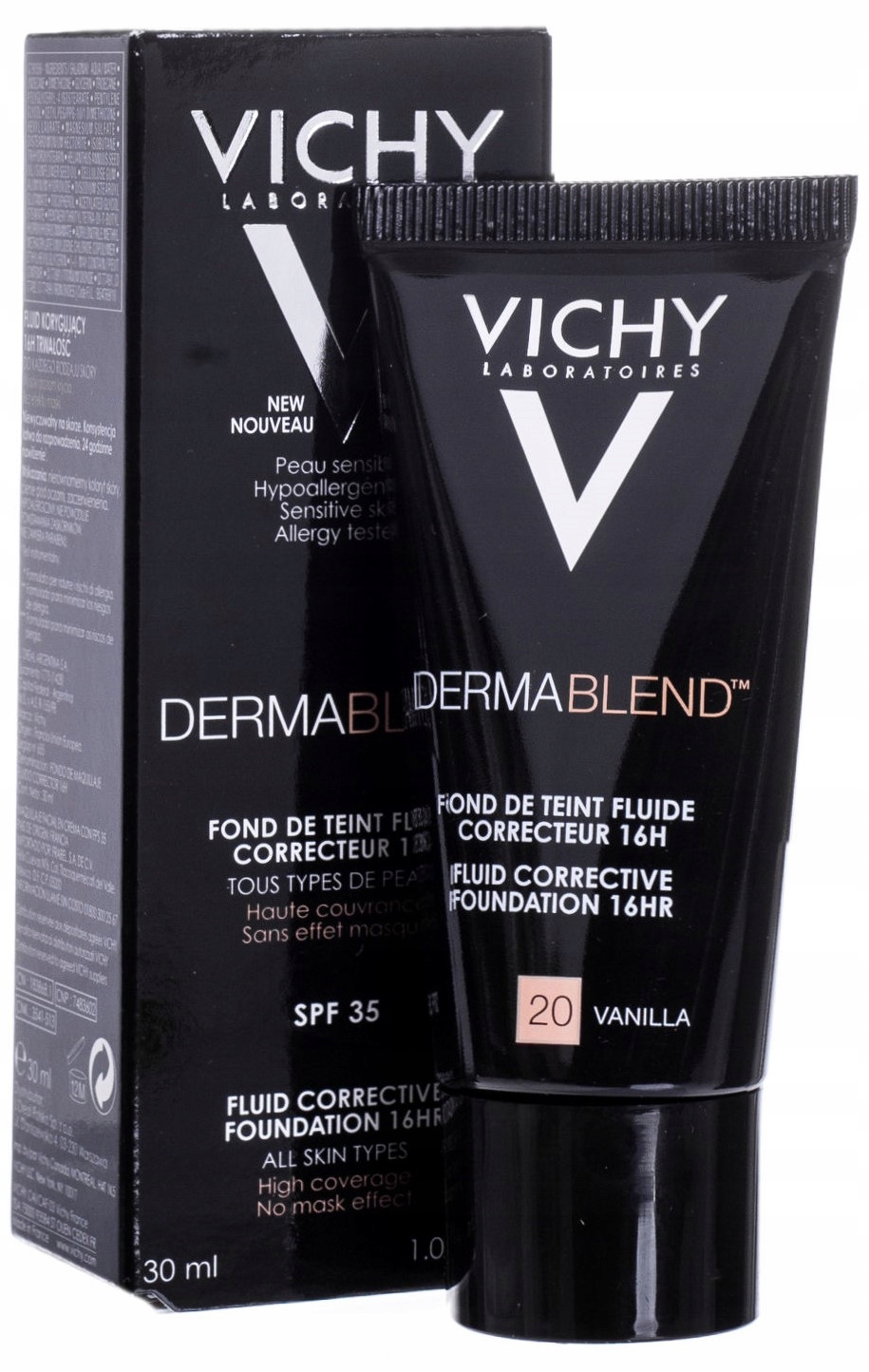 Vichy Dermablend — коригуючий флюїд з еластичною та рідкою консистенцією. Ідеально зливається зі шкірою та підлаштовується під її колір, усуваючи ефект маски. Легко розподіляється, покриваючи шкіру тонким, але ідеально покривним шаром. Не залишає жирних плям, забезпечуючи злегка пудровий фініш.