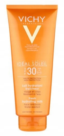 Ідеальний захисне обличчя та молоко SPF30 Vichy забезпечує шкіру не лише захист від шкідливих наслідків сонячного світла, але й тривалої гідратації. Консистенція світла робить крем легко поширюватися і швидко поглинається. Система запатентованих фільтрів Mexoryl® дозволяє отримати оптимальний спектр захисту від шкідливого сонячного випромінювання УФА та УФБ, захищаючи ДНК клітин шкіри. Це допомагає протидіяти фотозамінню шкіри та формуванню знебарвлення. Містить фільтри Photo -Team. Vichy Ideal Soleil Protective Face and Body Milk SPF30 є гіпоалергенною косметикою і підходить для використання людьми з чутливою шкірою, що підтвердило дерматологічні тести. Спеціально відібрані інгредієнти, включаючи теплову воду Vichy, роблять її ідеальною для шкіри всього тіла.
