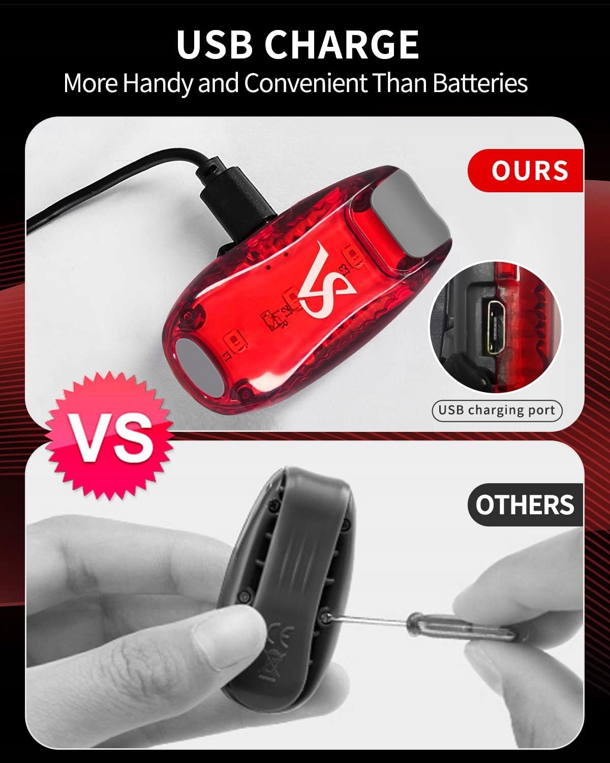 VICKSONGS ЗАДНІЙ ЛІХТАР ДЛЯ ВЕЛОСИПЕДА USB ЗАБЕЗПЕЧНА ЛАМПА З ЗАЖИМОМ 2 УПАК