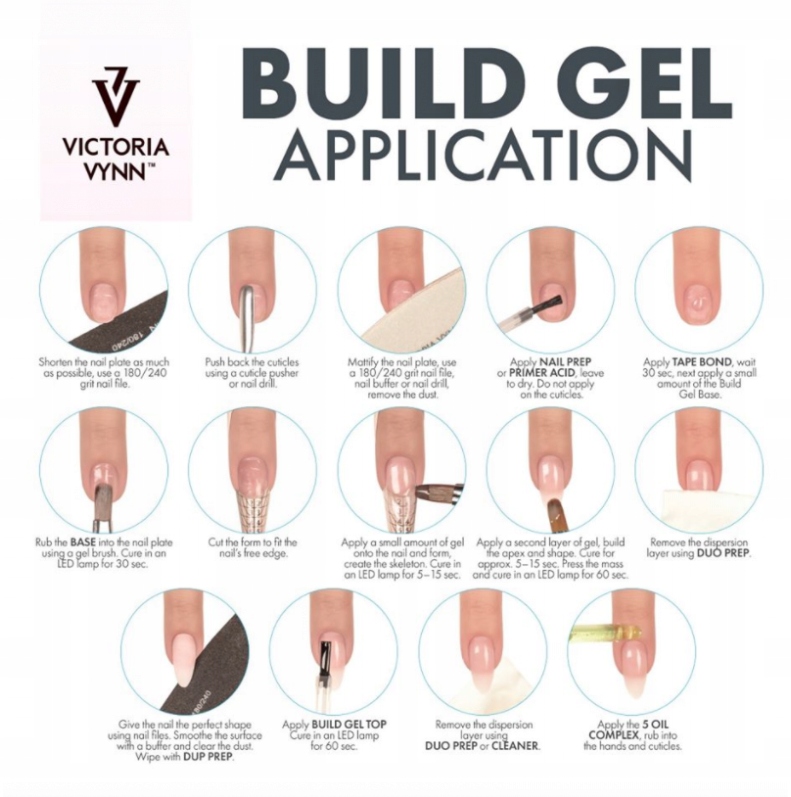 Завдяки своїм властивостям гелі забезпечують винятковий комфорт роботи та легке досягнення бажаного результату результат: моделювання нігтів з основними формами: квадрат, овал, мигдаль, готичний мигдаль, а також моделювання нігтів з інноваційними формами: кант, стилет, пайп