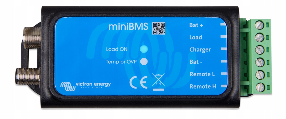 MiniBMS може замінити VE.Bus BMS у багатьох ситуаціях. Однак його не можна використовувати з інверторами/зарядними пристроями VE.Bus MultiPlus і Quattro, оскільки він не оснащений інтерфейсом VE.Bus. MiniBMS розроблено для використання з акумуляторами Victron Smart LiFePo4 із круглими роз’ємами M8.