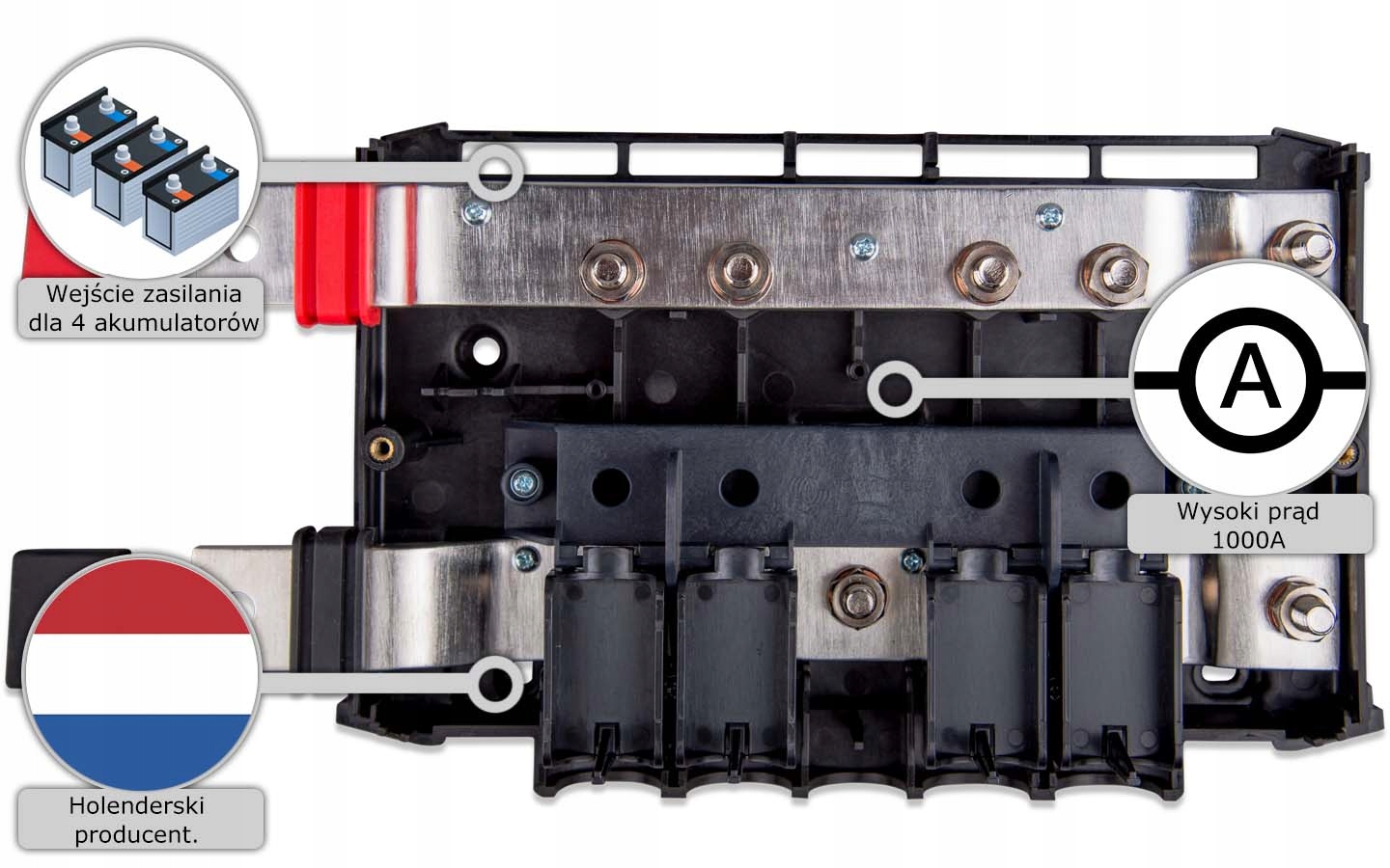 Модульна шина постійного струму для підключення акумуляторів до системи розподілу постійного струму. Пристрій призначений для підключення більш ніж однієї батареї (банку батарей) до приймача або шини постійного струму, наприклад, розподільника Lynx. У разі паралельного підключення кількох батарей напруга до шини постійного струму подається окремо від кожної батареї. Вхід живлення Lynx дозволяє подавати напругу від 4 батарей. Вхід живлення Lynx модульно підключається до розподільника Lynx, що, у свою чергу, дозволяє підключати кілька приймачів постійного струму. Наприклад, 3 інвертори MultiPlus, що працюють у три фази.