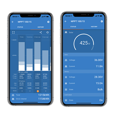 Дистанційно керуйте та контролюйте функції зарядного пристрою MPPT SmartSolar із вбудованим Bluetooth, підключивши його до свого смартфона чи іншого пристрою через VictronConnect. Якщо ваша установка підключена до Інтернету через пристрій GX, портал віддаленого керування Victron (VRM) надає вам доступ до всіх функцій вашого MPPT у будь-який час і з будь-якої точки світу; VictronConnect і VRM можна використовувати безкоштовно. Для віддаленого встановлення – навіть якщо немає доступу до Інтернету, ви все одно можете контролювати MPPT, підключивши пристрій GlobalLink 520.