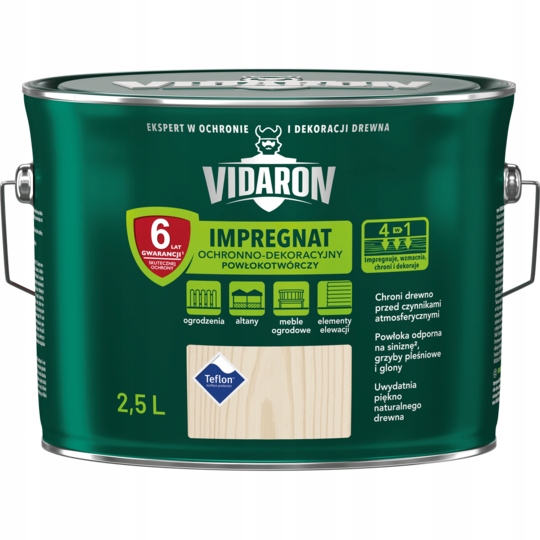 Покривна просочення для захисно-декоративного фарбування деревини зовні та всередині приміщень. Підкреслює красу натуральної деревини, просочує, зміцнює та захищає її від руйнівних погодних умов. Крім того, створює на поверхні деревини захисне покриття, стійке до біокорозії – синяви, цвілі та водоростей. У поєднанні з безбарвним захисним просоченням VIDARON забезпечує повний захист деревини.