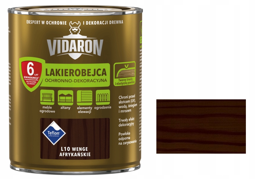 високоякісна захисна та декоративна лак з додаванням поверхневого захисника Teflon®. Це створює компактні, міцні та гнучкі покриття, забезпечуючи максимальний та тривалий захист деревини від руйнівної води, ультрафіолетового випромінювання та змінних погодних умов. Забезпечує 6 -річну гарантію ефективного захисту.