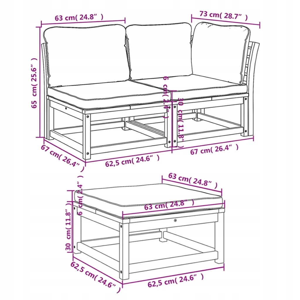 VIDAXL 3-CZ. Садовий комплект, подушки, деревина акації