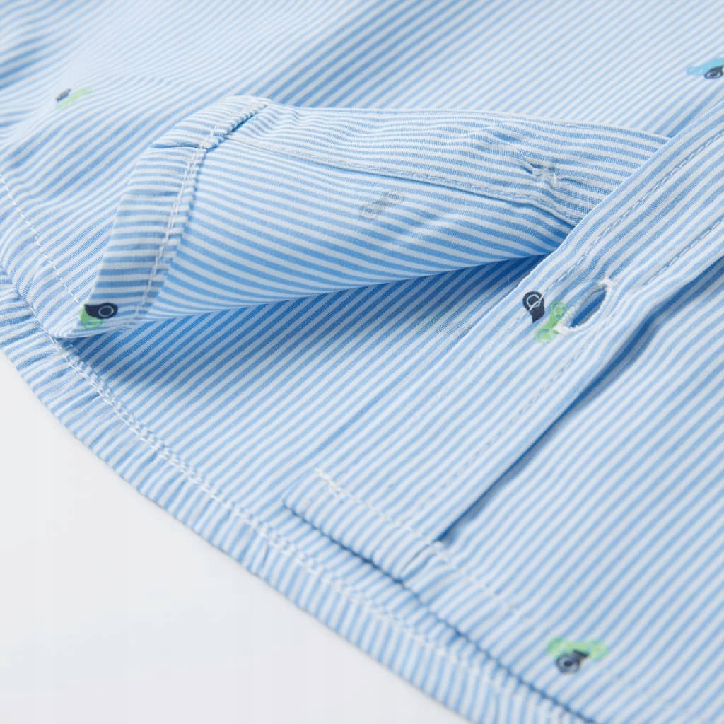 Ця дитяча сорочка має довгі рукави, комір Кент, одну нагрудну кишеню та ряд застібок на ґудзиках. Дитяча сорочка виготовлена зі 100% бавовни, що робить її зручною та дихаючою.